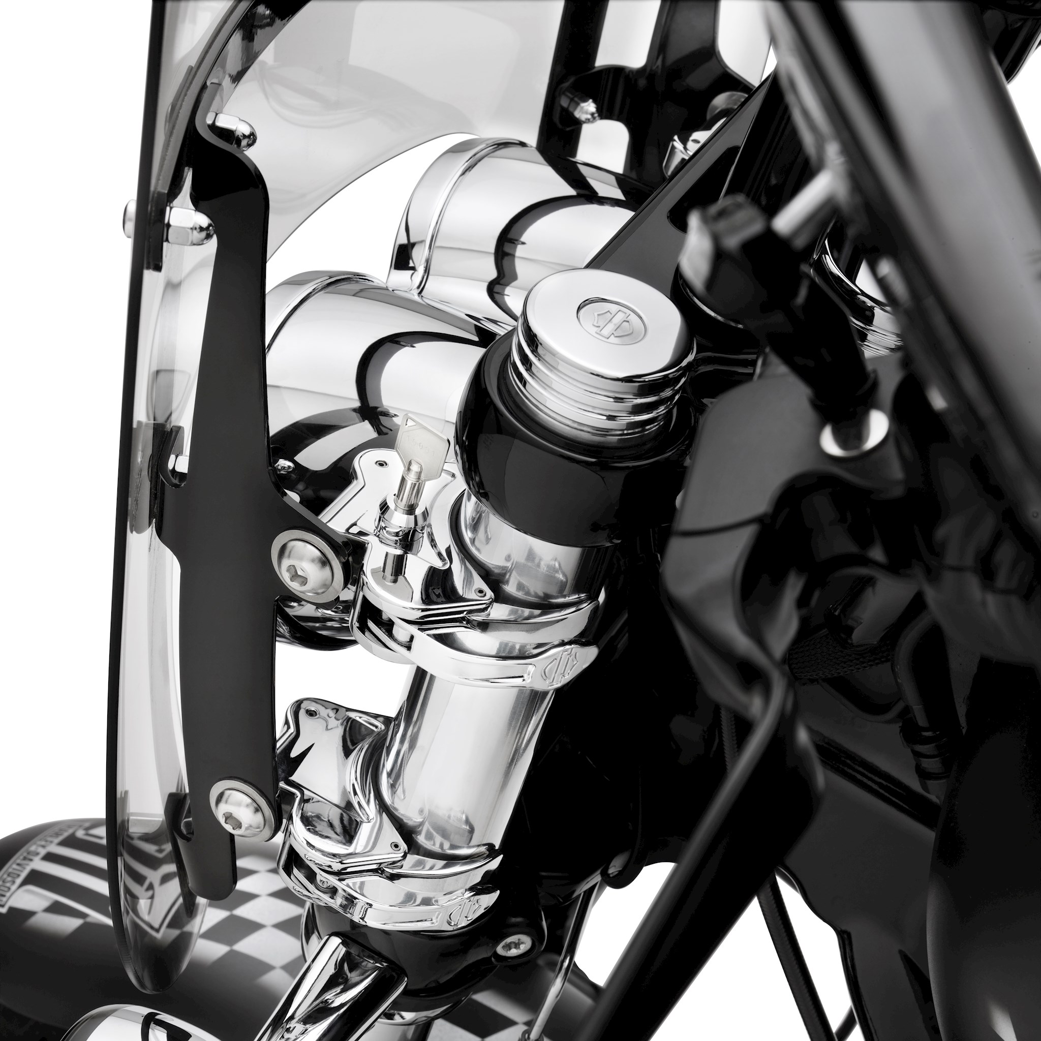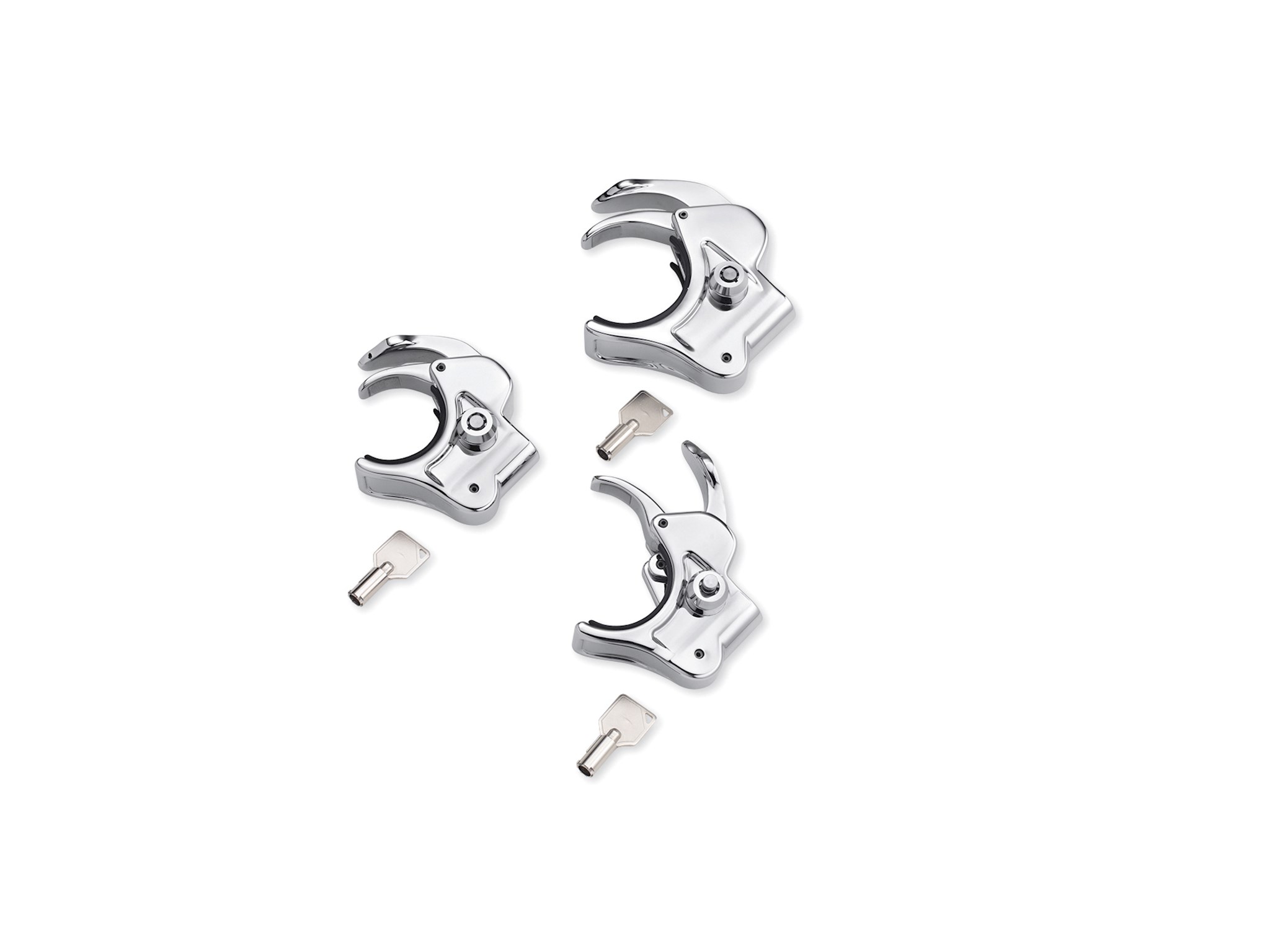 Protect your investment. This Locking Quick-Release Windshield Clamp secures your windshield from grab-and-run theft, giving you peace of mind when you have to leave your bike unattended. The chrome-plated locking clamp replaces one of the Original Equipment windshield clamps and features a push-button lock with a mini barrel-style key for easy removal. Kit includes one locking clamp and two matching keys.