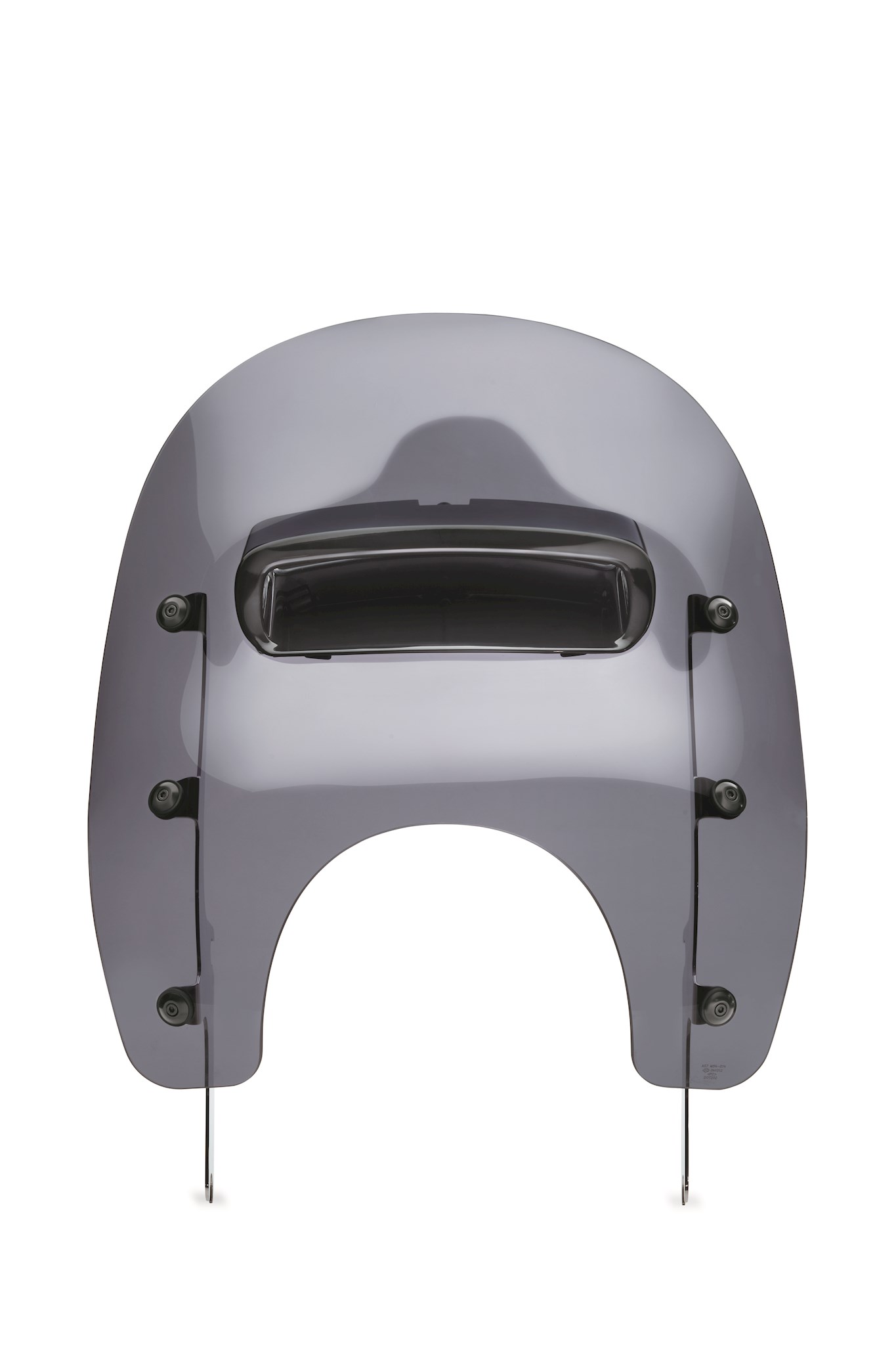 Reduce helmet buffeting at speed. The Harley-Davidson® Detachables™ Wind Splitter Vented Windshield features an exclusive fingertip-adjustable center vent that reduces turbulence behind the windscreen. When open, the controlled airflow fills the negative pressure area behind the shield and helps to smooth the flow of air over the top of the screen and around the rider. The revised flow reduces helmet bobbing and neck fatigue so you can comfortably spend more time in the saddle. The open vent also provides cooling airflow to the rider at low speeds and in city traffic. Engineered to provide the riding comfort of a larger windshield, this low-profile screen's contemporary contour sets it apart from the crowd. The shape keeps the windshield below your siteline so you don't look through bugs and road grime and the detachable design means you can ride without the shield when the mood strikes. The shield is formed of hard-coated polycarbonate for strength and scratch resistance and the dark-smoked finish reduces glare. The slim polished stainless steel brackets mount to the Original Equipment rubber isolated docking points for ease of installation and removal.