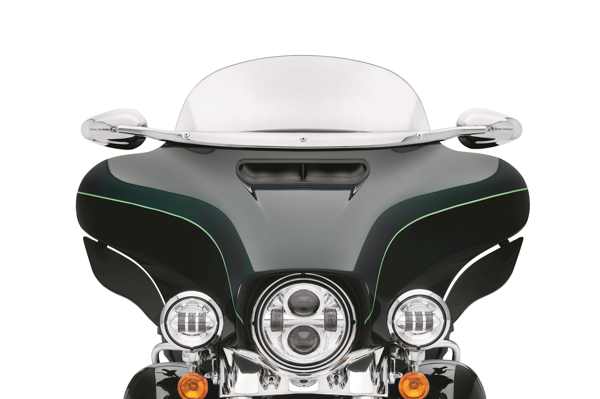 Put your best look front and center. This Windshield Trim Kit adds a finishing touch to the base of the windshield and positions the rear view mirrors (sold separately) at the fairing's upper edge. The sweeping arms place the mirror shell in a high-mount location, and permit a wide range of up-down-fore-aft adjustability. You get a clean looking handlebar or inner fairing, and a great rear view past your shoulders. Kit includes 3-piece trim and all required mounting hardware. Mirrors sold separately.