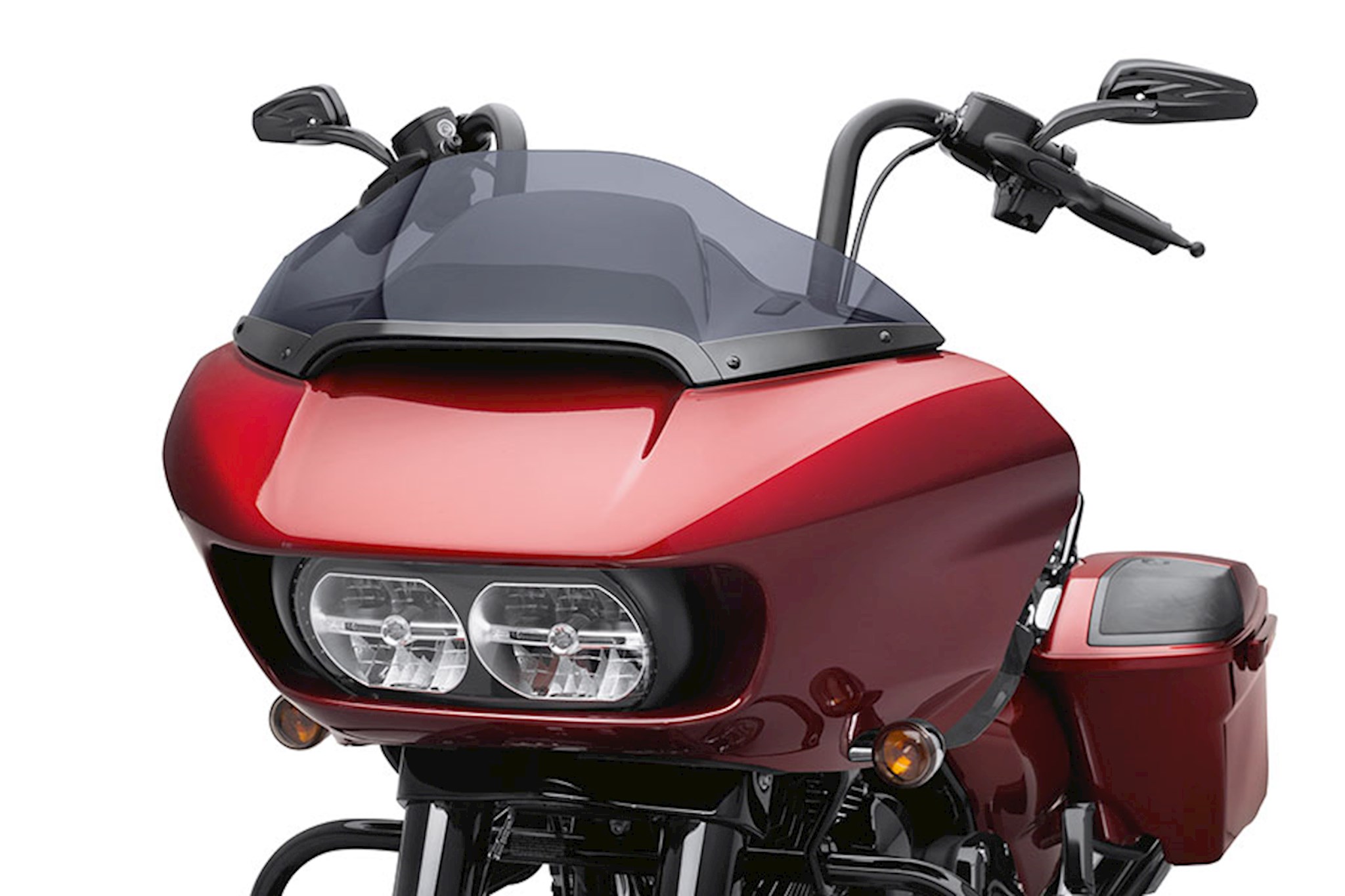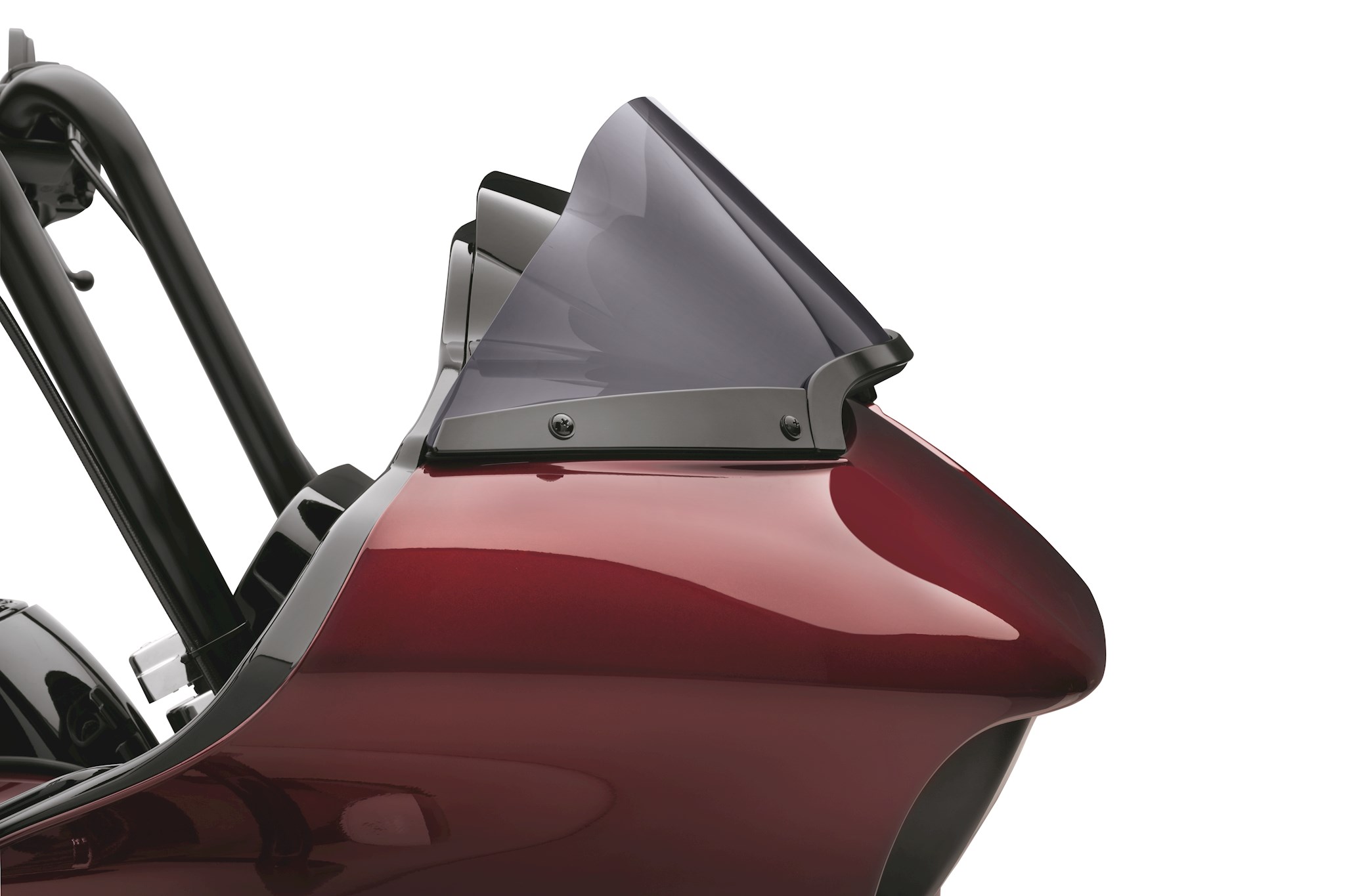 The Road Glide® model's shark-like fairing is a bold and captivating styling element, so it requires just the right visual touch to complement the signature look. These elegant Windshield Trim components conceal the base of the windshield and sweep over the center Splitstream vent for a continuous band of "custom". Machined from billet aluminum, these easy-to-install components are available in a variety of finishes to match your customizing direction. Mix and match the black or chrome center piece with your choice of chrome, black, or black and machined aluminum Edge Cut side trim to develop your own unique look. Side Trim Kits include left and right side trim and mounting hardware. Fits '15-later Road Glide models. Installation requires one Side Trim Kit and one Center Trim Kit.