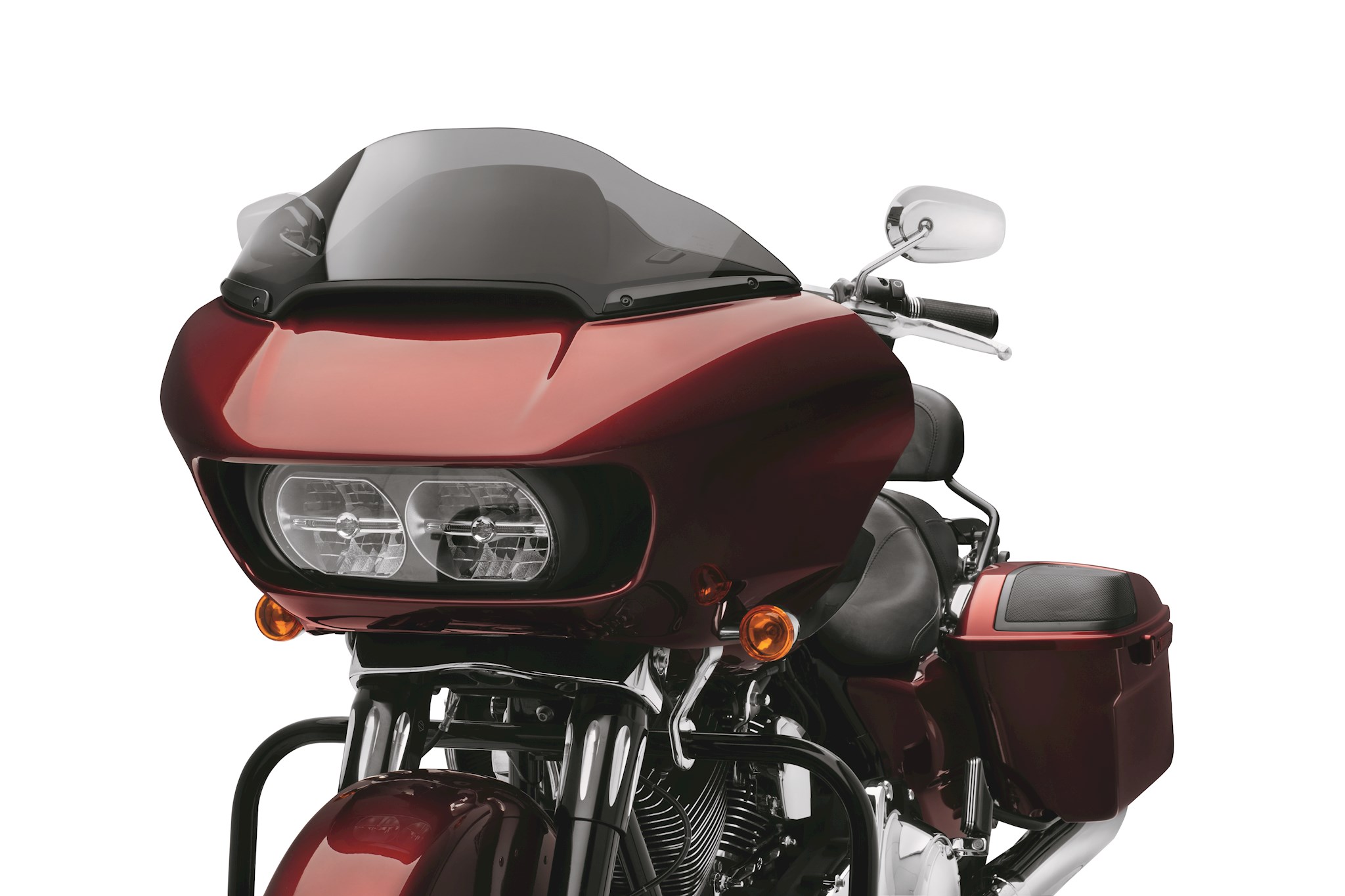 This easy to install, 2-piece trim kit adds a speed-stripe accent to the base of the windshield. Tapered from the leading to the trailing edge, the glass-smooth trim features counter bored mounting holes and flush-mount hardware for a clean, elegant look. Kit includes left and right trim and installation hardware. Fits '15-later Road Glide models.