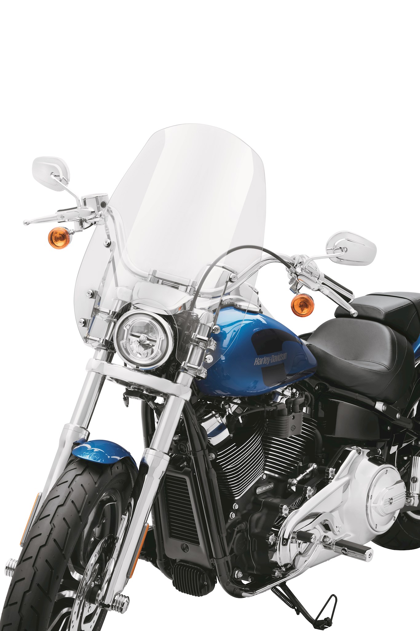 Shaped with just the right mix of width and height to reduce the pounding air pressure against your chest, the Wind Splitter Super Sport Windshield allows you ride comfortably while maintaining the wind-in-the-hair feeling. The windshield's contoured design incorporates a flipped upper edge that manages airflow and turbulence across the top of the shield. The flip adds additional wind shear lift, and effectively provides the protection of a taller wind screen. Ideal for a cool morning ride, the sleek profile of the Super Sport Windshield hugs the front headlamp for a sporty look. And because the windshield mounts to the fork tubes with elegant die-cast lever-locking clamps, you get quick on-and-off convenience and a clean, custom look. Kit includes the hard-coated polycarbonate screen, brackets and quick-release docking clamps.