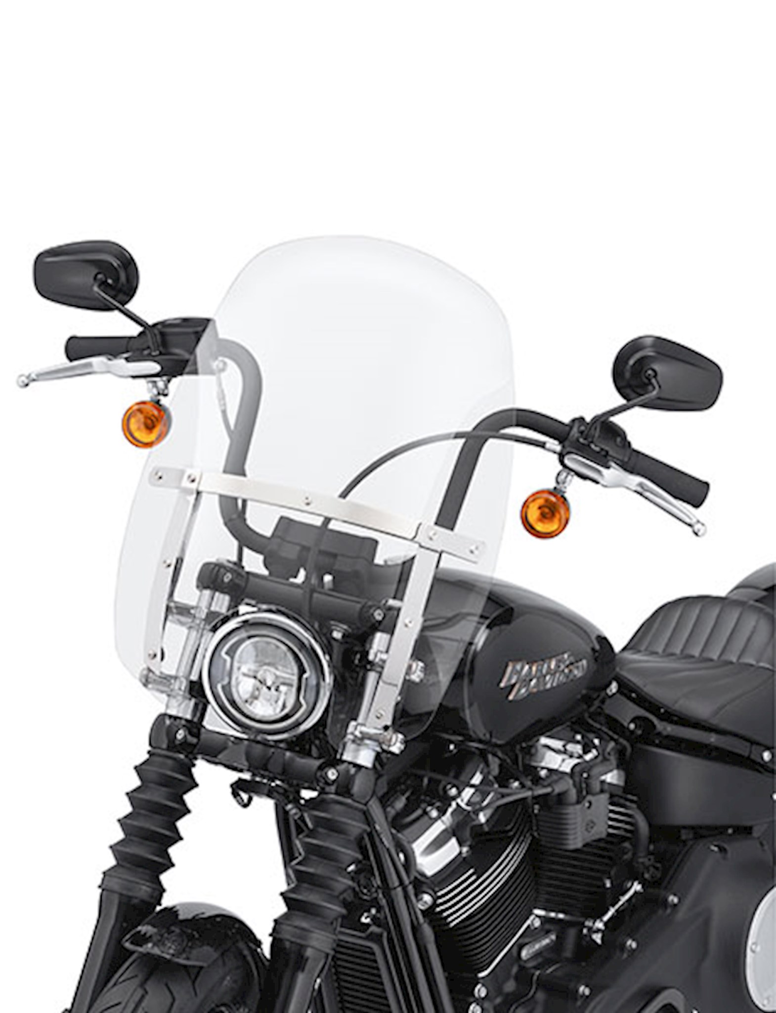 Engineered to provide the riding comfort of a larger windshield, this Wind Splitter Windshield features a contemporary contour that sets it apart from the crowd. The compact shape is designed to keep the windshield below your line of sight so you don't need to look through bugs and road grime, while the flipped upper edge manages airflow and turbulence across the top of the shield. The flip adds additional wind shear lift to provide the protection of a taller wind screen. You get a fatigue-free highway ride with reduced pressure on your chest and arms, and the detachable design means you can ride without the shield when the mood strikes. The hard-coated polycarbonate windshield mounts to the fork tubes with elegant die-cast lever-release clamps, so the windshield does not require any leave-behind docking hardware. You get quick on-and-off convenience and a clean, custom look. No tools are required and the kit includes everything needed to install the windshield. Fits '18-later FXBB, FXLR and '14-'17 FXDL models.