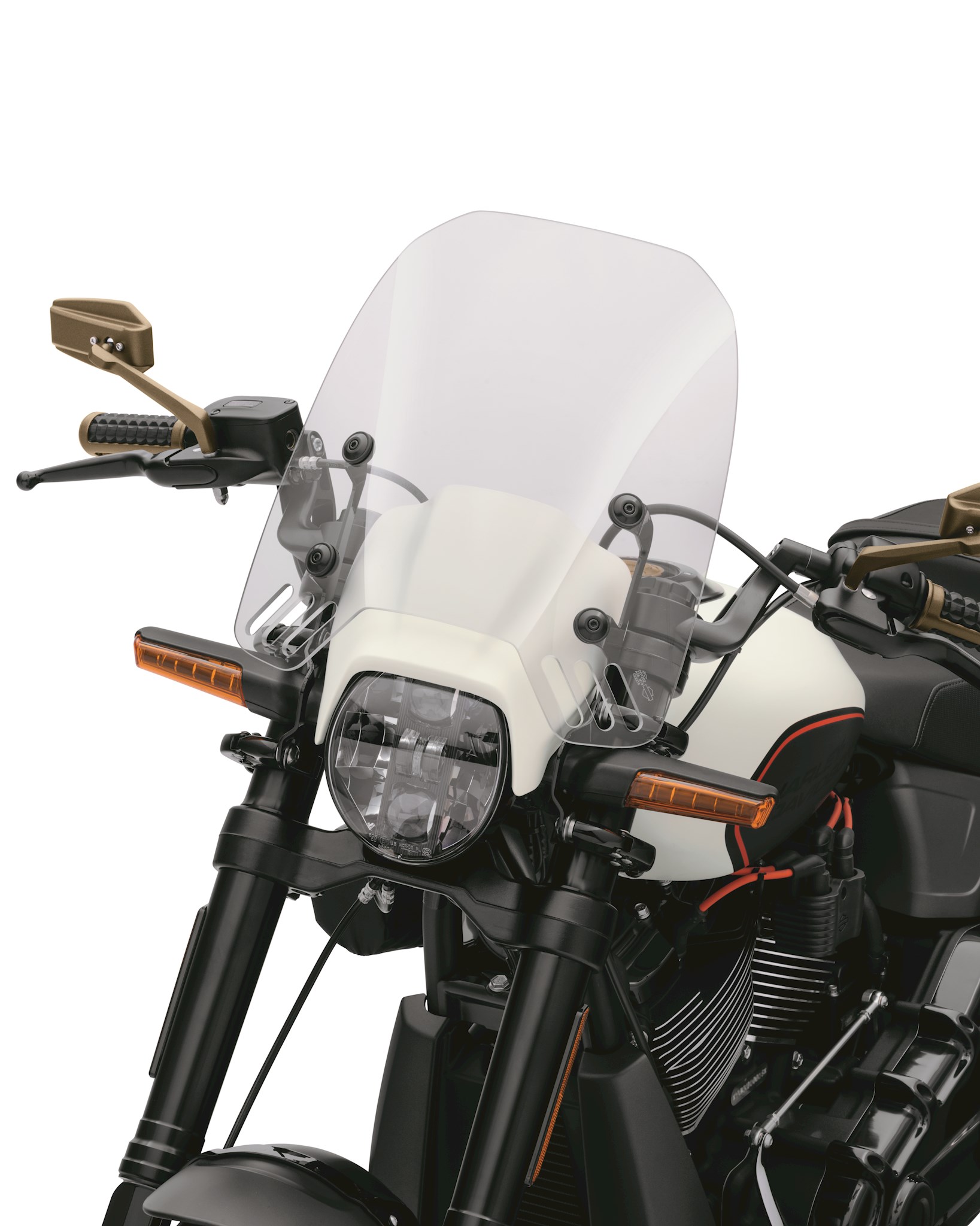 Fits '19-later FXDRS models. Windshield dimensions: Overall height – 16"; width – 15".