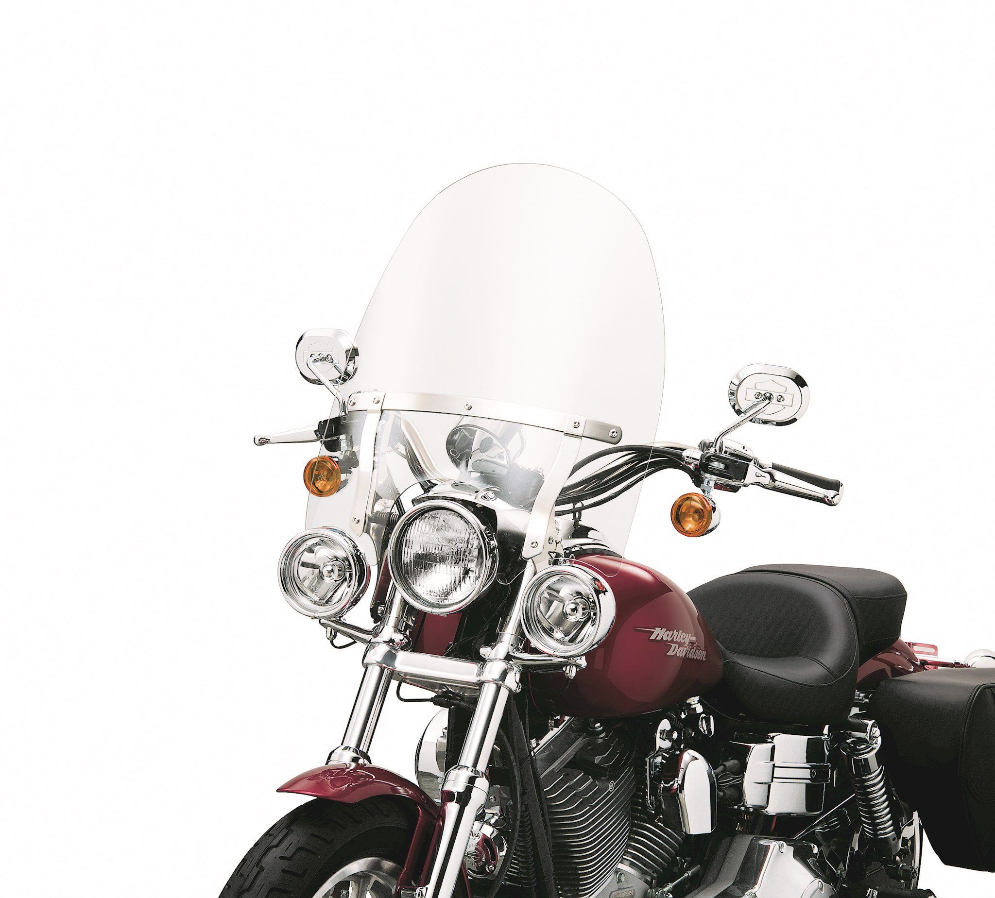Whether it's for keeping bugs off your face or warmth in your body, a windshield has a huge impact on rider and passenger comfort. By diverting air pressure past your chest and over your helmet, a windshield can add hours of riding comfort. This high-quality polycarbonate windshield mounts to the fork tubes with detachable Docking Hardware for easy on-and-off convenience and a quick return to a stripped-down profile and is shaped to fit models equipped with Auxiliary Lighting Kits.