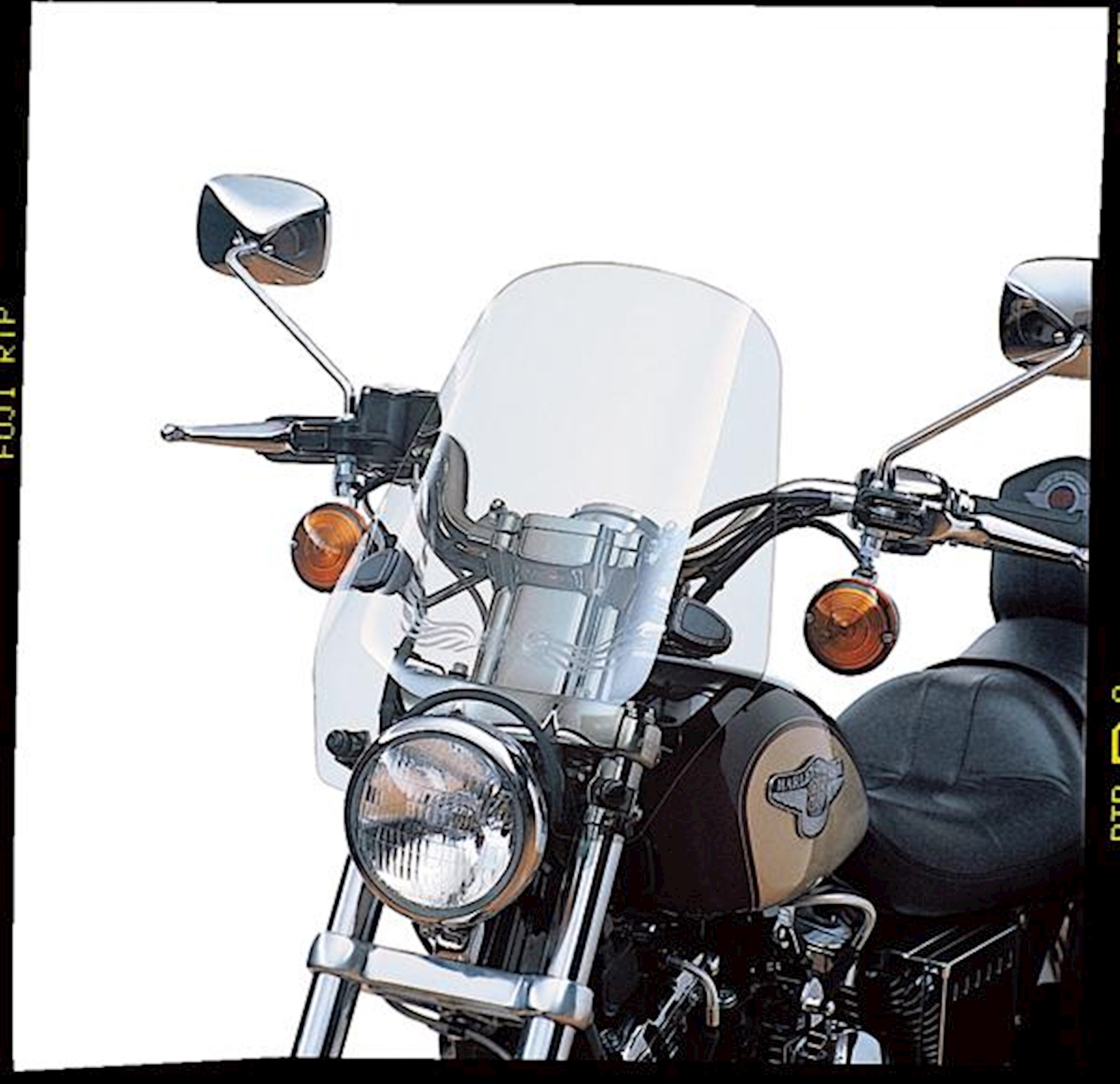 Formed of polycarbonate and hard-coated to resist scratching. Light smoke windshield is contoured to fit the headlamp and incorporates adjustable four-point mounting. Functional styling helps deflect wind to reduce upper body fatigue.