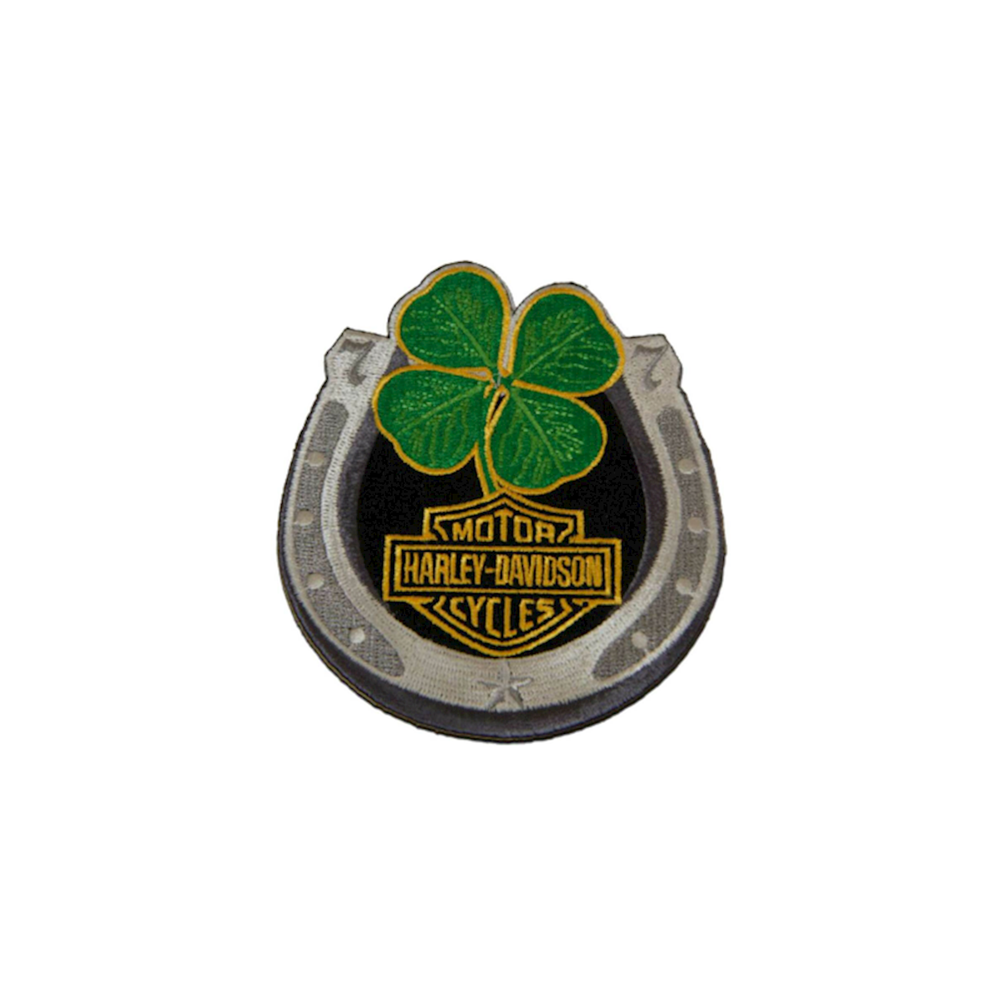 Harley-Davidson® 3.4 in. Embroidered Lucky Clover Horseshoe Emblem Sew-On Patch