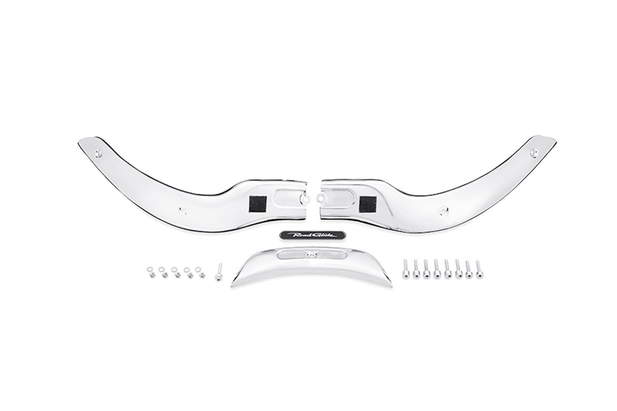 The fairing is a key visual element of your bike, so it demands the bold design of this elegant contoured windshield trim. This sweeping trim hugs the curvature of the fairing and conceals the base of the windshield and the windshield gasket for a clean, finished look. The multi-piece design simplifies installation. Kit includes mounting hardware and "Road Glide" medallion. Fits '04-'13 Road Glide models (except FLTRXSE and FLTRUSE).
