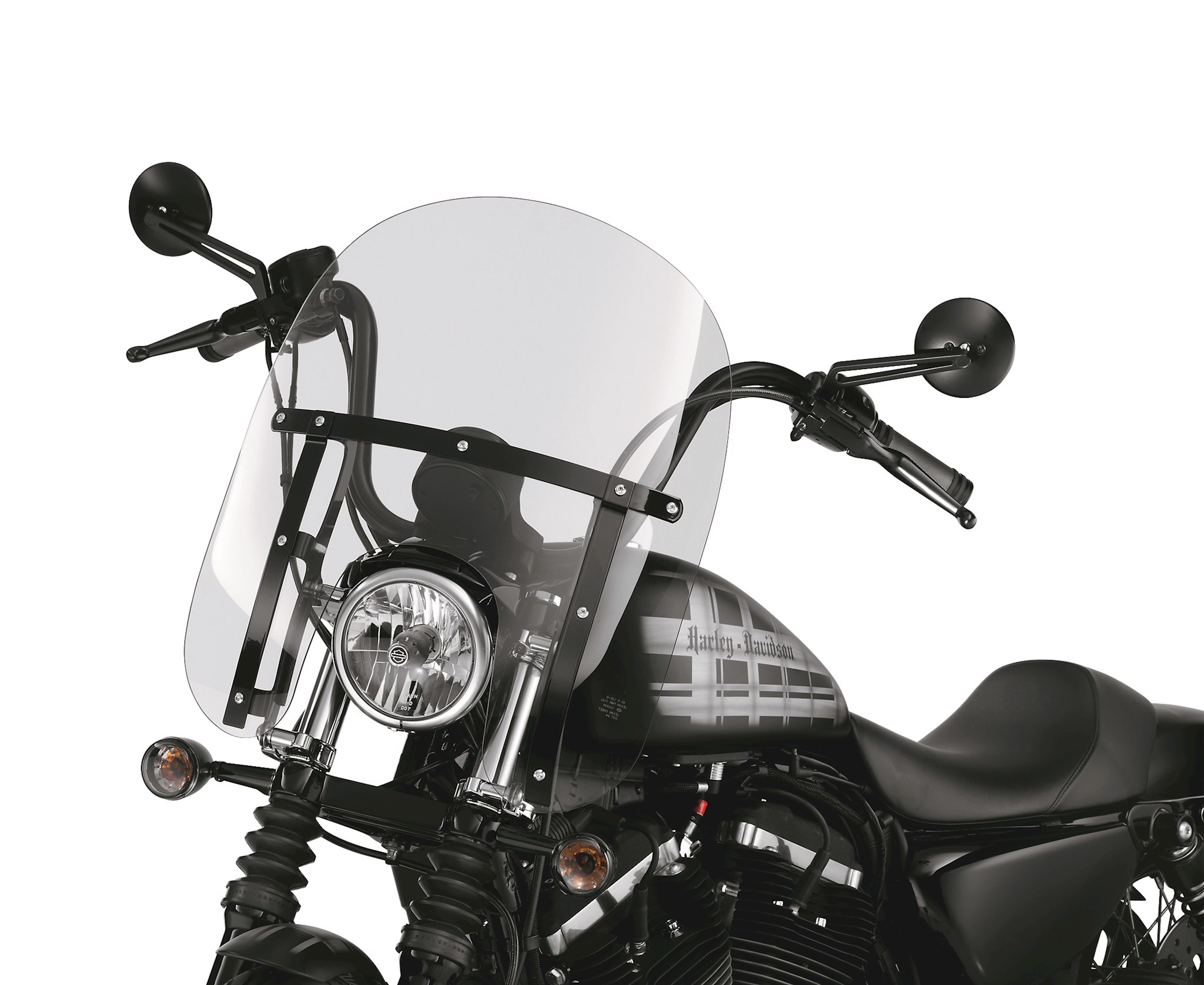 Combine the classic Harley-Davidson® windshield shape with a revolutionary new attachment system and you have the best of style and function. The windshield mounts to the fork tubes with elegant die-cast lever-release clamps, so the windshield does not require any "leave-behind" docking hardware. You get quick on-and-off convenience and a clean, custom look. No tools are required and the kit includes everything needed to install the windshield. The tough, hard-coated polycarbonate windshield is available in your choice of traditional polished or gloss black horizontal and vertical braces. Fits '88-later XL (except XL1200T, XL1200X, '11-later XL883L and XL1200C) and '91-'05 Dyna models (except FXDWG and FXDXT).