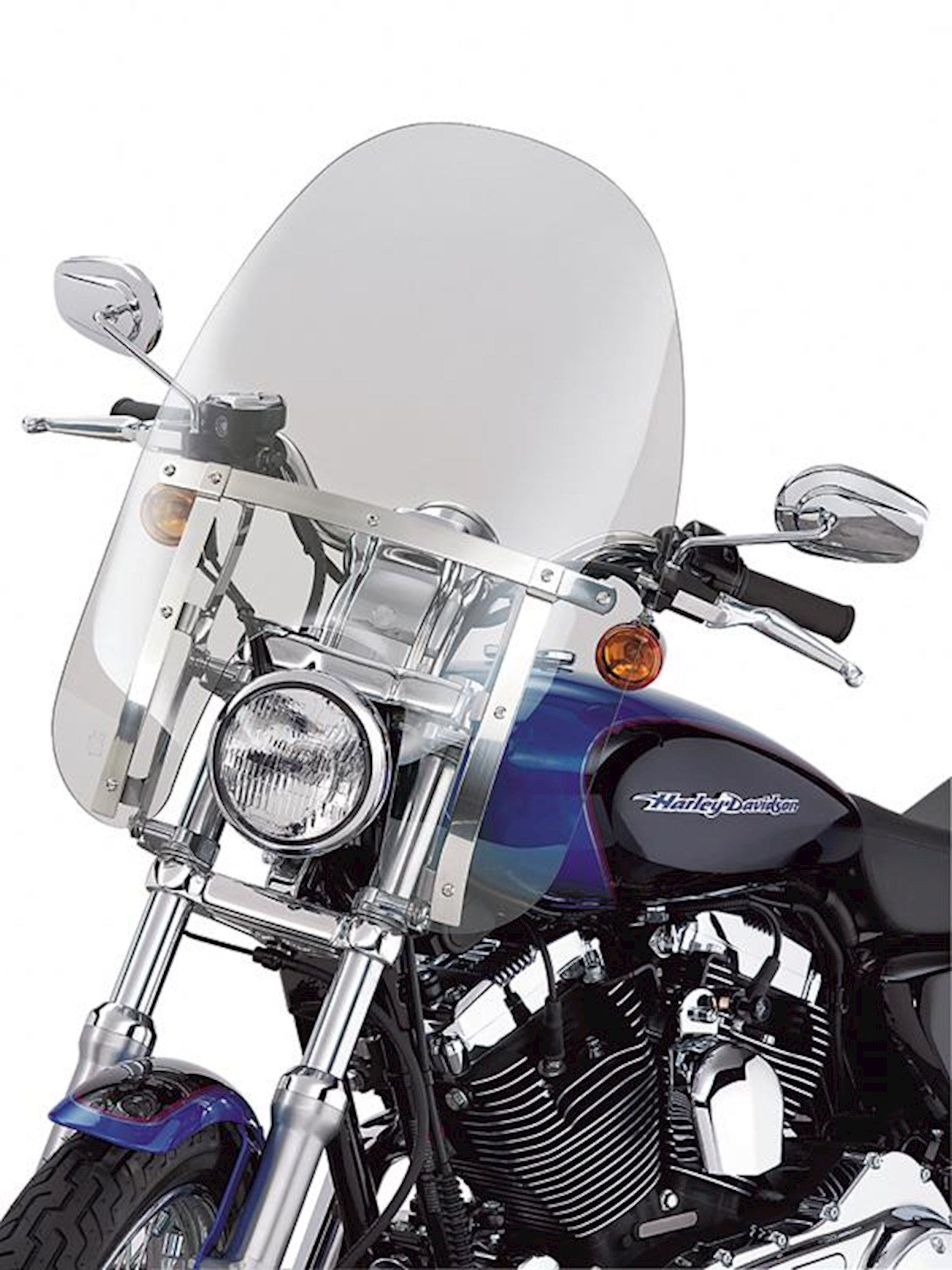 Combine the classic Harley-Davidson® windshield shape with a revolutionary new attachment system and you have the best of style and function. The windshield mounts to the fork tubes with elegant die-cast lever-release clamps, so the windshield does not require any "leave-behind" docking hardware. You get quick on-and-off convenience and a clean, custom look. No tools are required and the kit includes everything needed to install the windshield. The tough, hard-coated polycarbonate windshield is available in your choice of traditional polished or gloss black horizontal and vertical braces. Fits '88-later XL (except XL1200T, XL1200X, '11-later XL883L and XL1200C) and '91-'05 Dyna models (except FXDWG and FXDXT).
