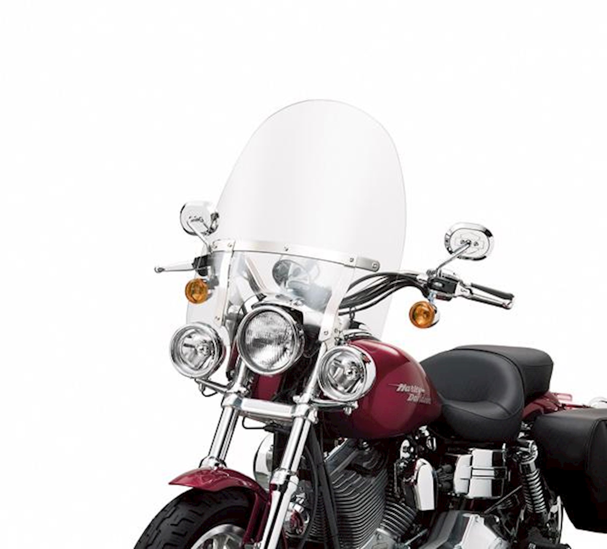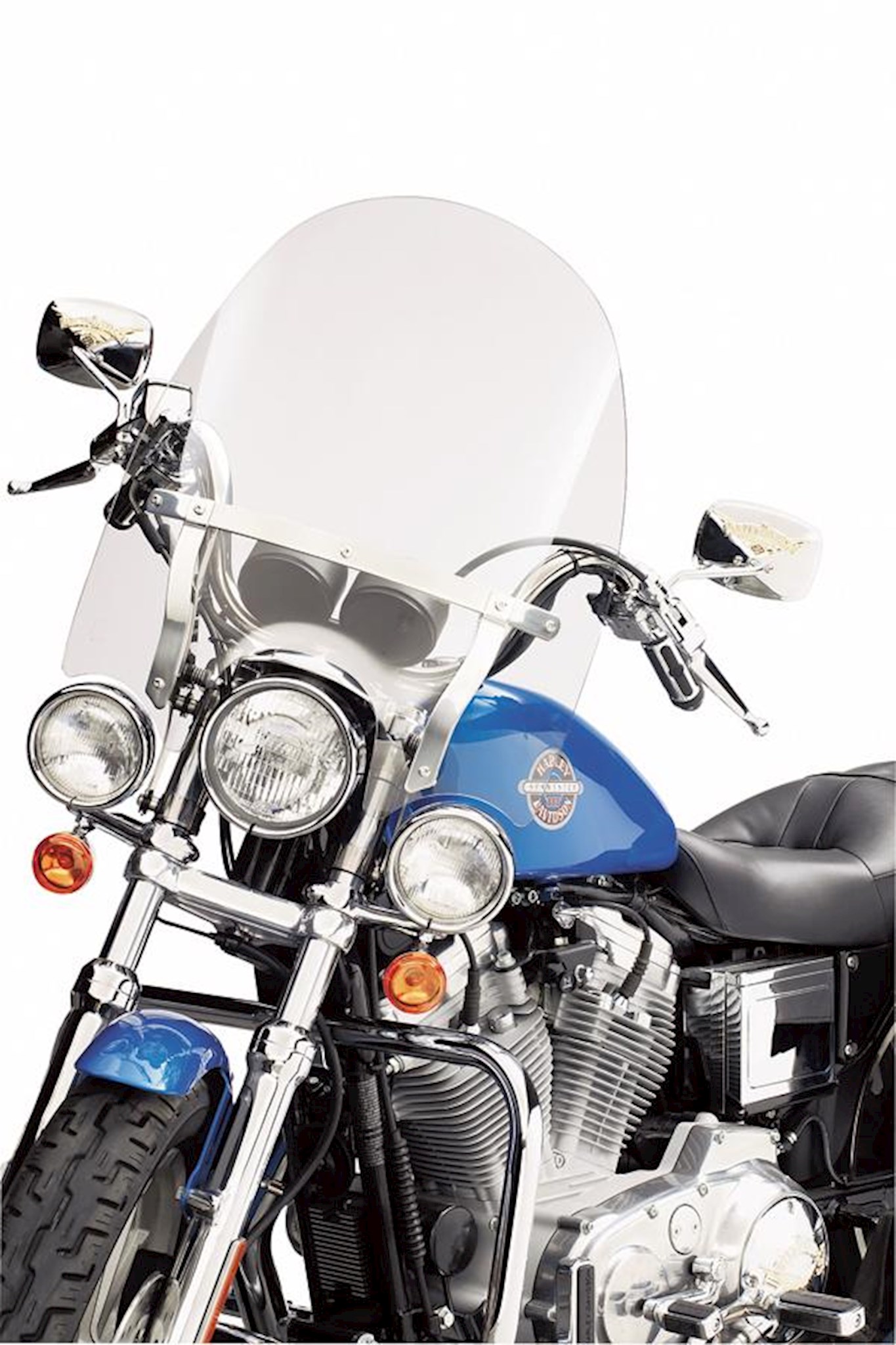 Whether it's for keeping bugs off your face or warmth in your body, a windshield has a huge impact on rider and passenger comfort. By diverting air pressure past your chest and over your helmet, a windshield can add hours of riding comfort. This high-quality polycarbonate windshield mounts to the fork tubes with detachable Docking Hardware for easy on-and-off convenience and a quick return to a stripped-down profile and is shaped to fit models equipped with Auxiliary Lighting Kits.