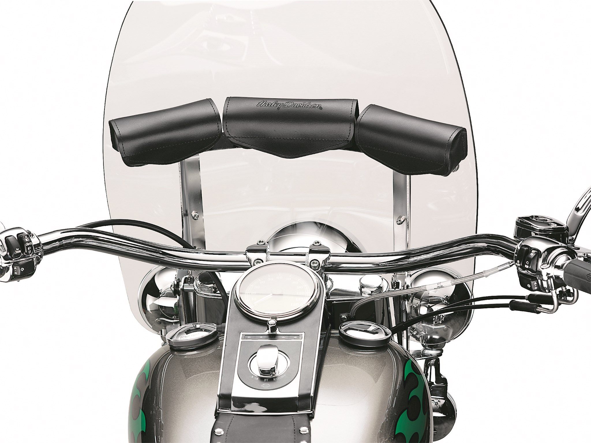 Add convenient storage space up front where you need it. This easy-to-install windshield pouch features three easily accessible storage pockets sized for cell phones, glasses and other small items. The center pouch is accented with an embossed "Harley-Davidson" script for a finishing touch.