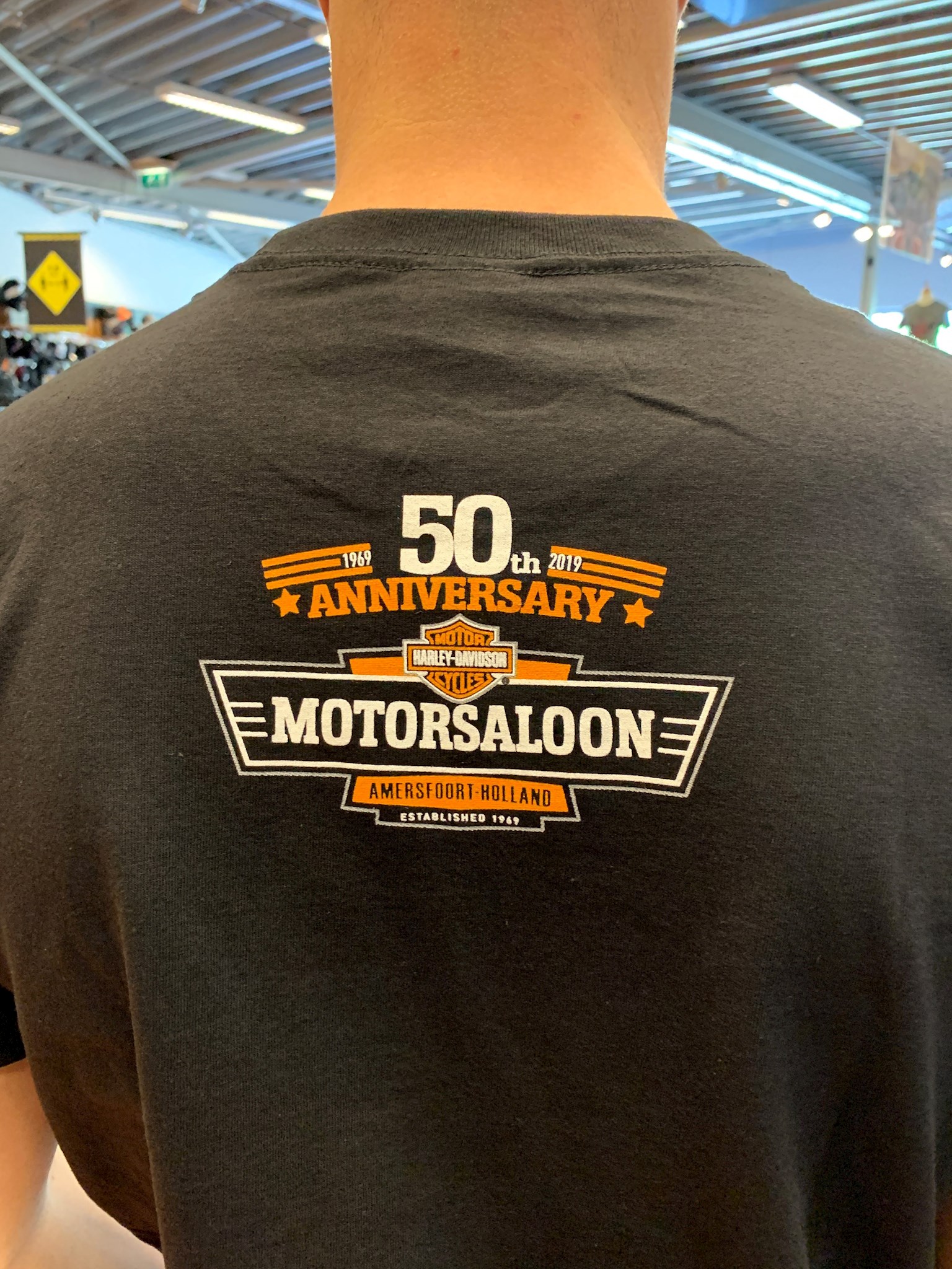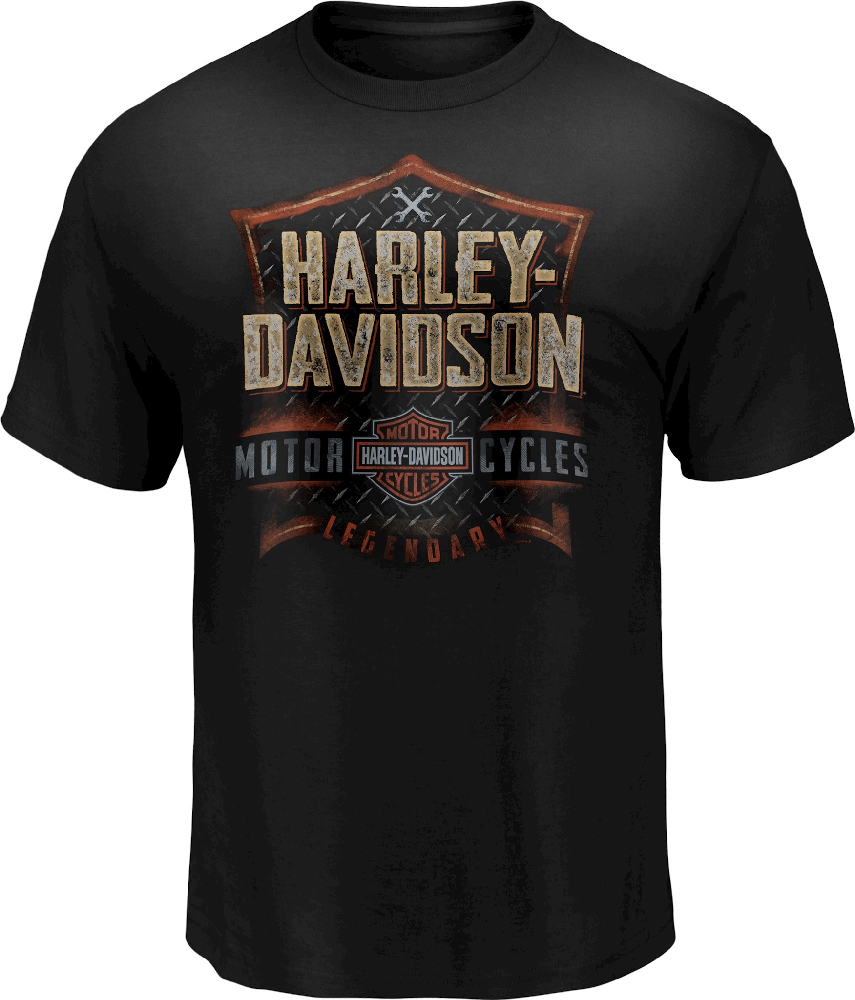 Harley-Davidson® Men's Street Signs Short Sleeve T-Shirt - Solid Black,5L33-HHC7. Features a screen printed distressed Harley-Davidson® script graphic. Back features our Motor Saloon Harley-Davidson® Dealer logo. Classic style crew neck, traditional comfort fit. Soft and comfortable t-shirt, made from 100% cotton. Guys you can never have too many black t-shirts!