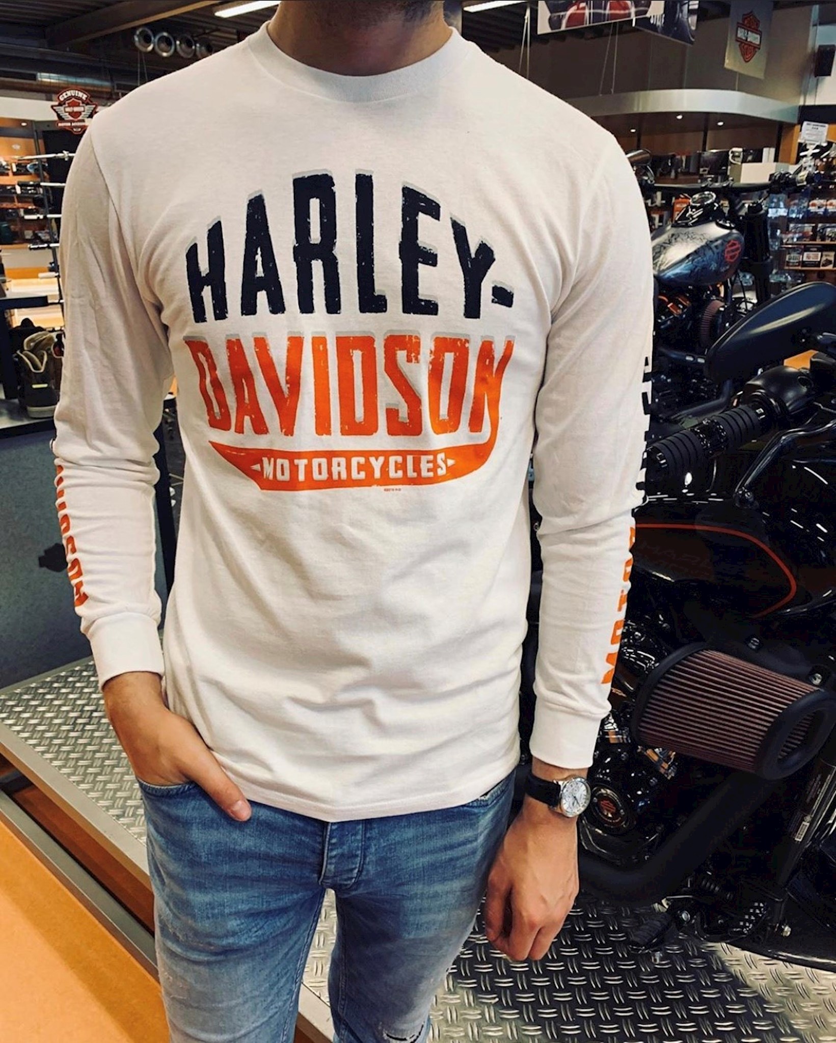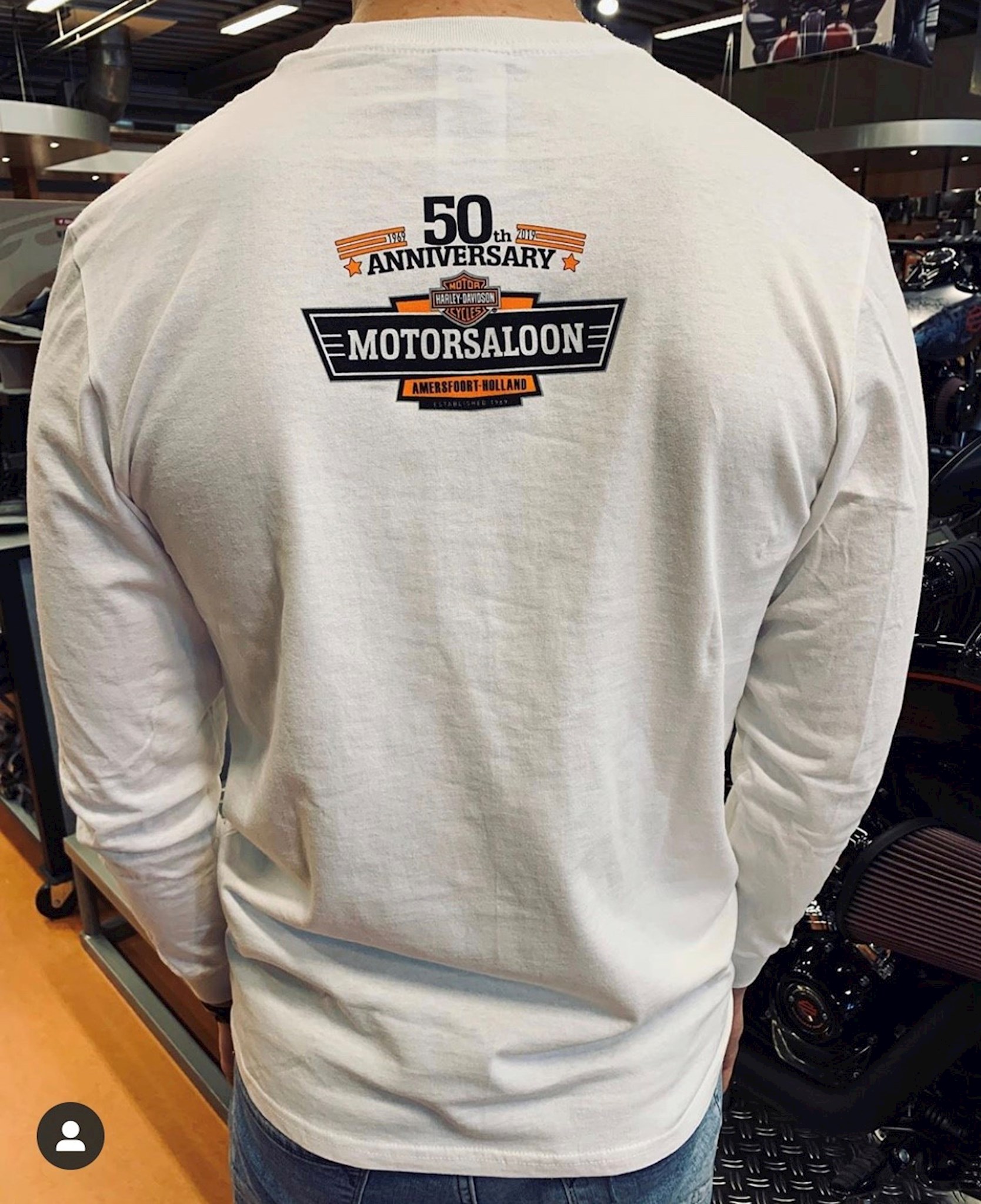 - 100% katoen. - Backprint dealer Motor Saloon Harley-Davidson.