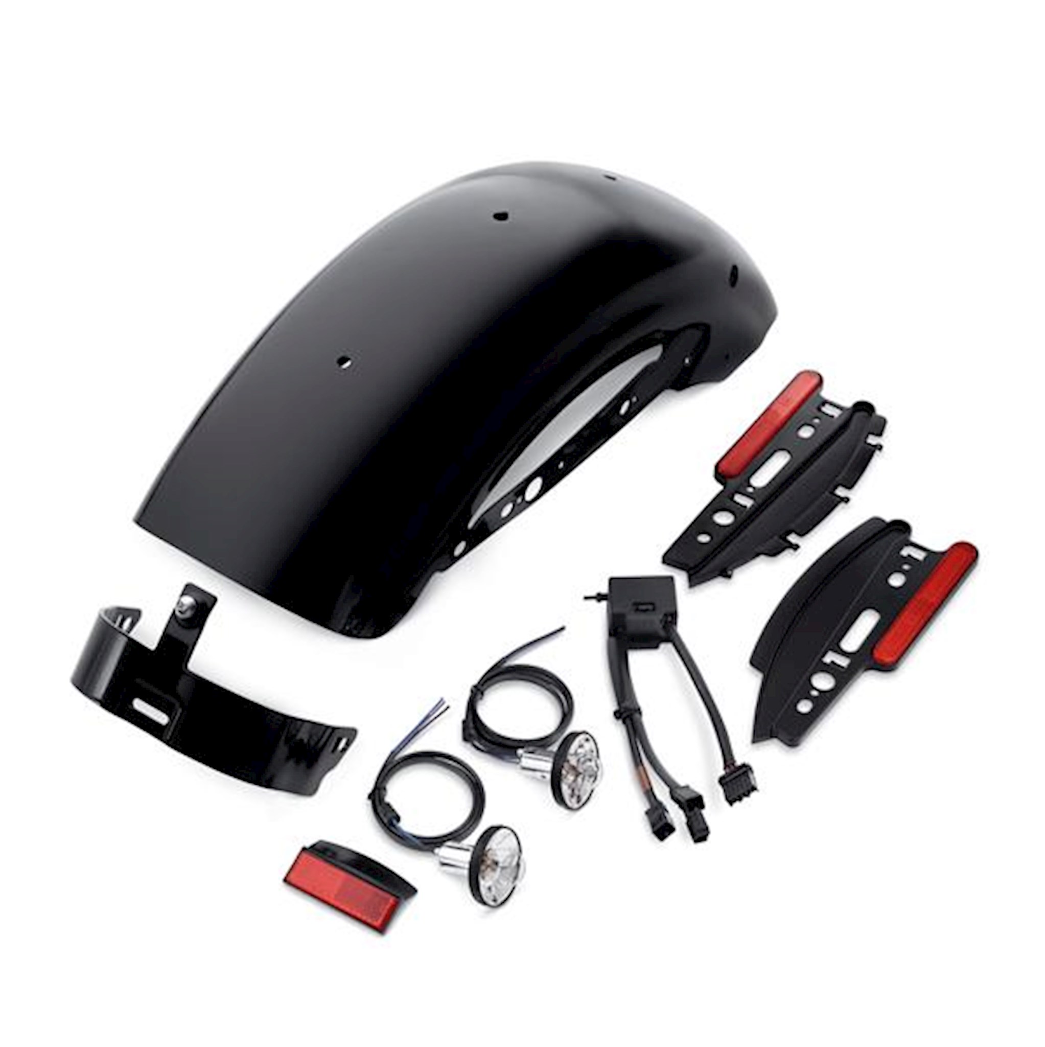 Complete "bolt-on" fender kit includes everything you need to convert your '04-later Sportster® model to the chopped rear fender look. Available in Vivid Black or Primed finish, this kit can be installed with simple tools and requires no frame modifications or fabrication. The chopped fender eliminates the traditional tail lamp and replaces the Original Equipment rear turn signals with "stop-turn-tail" lights for a clean, stripped-down appearance. All you need to add is a side mount or under-fender mount license plate bracket (sold separately). Fits '07-'09 XL models (stock on XL1200N and XL883N). Requires separate purchase of Side Mount License Plate Assembly P/N 60318-07.