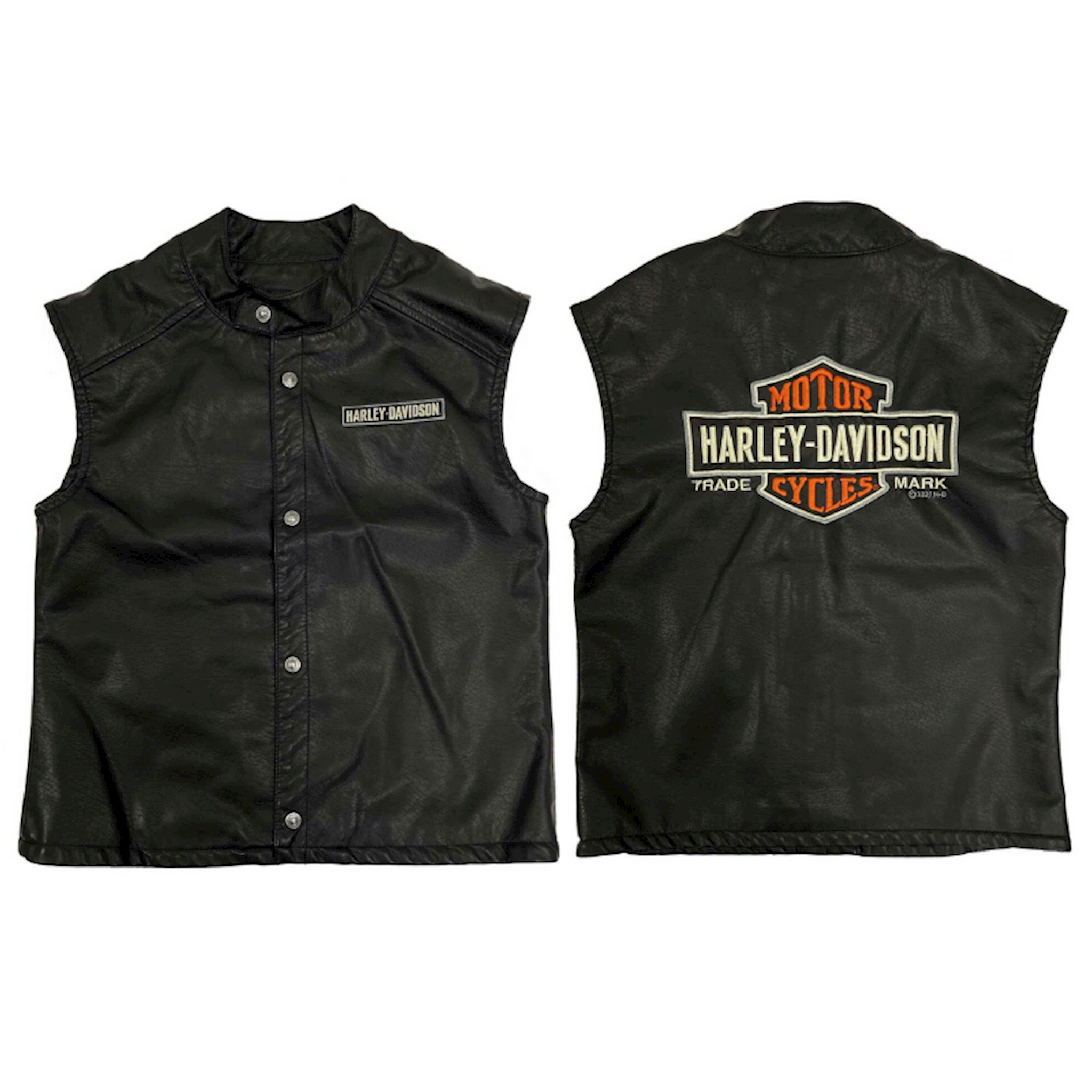 Soft and comfortable, made from 100% polyurethane. Silky 100% polyester liner. This vest is given a splash of Harley on the front with embroidered Harley-Davidson® script. Famous elongated Bar & Shield logo embroidered on back. High-quality snap closure. Perfect for your little man to be a biker like his mom or dad.