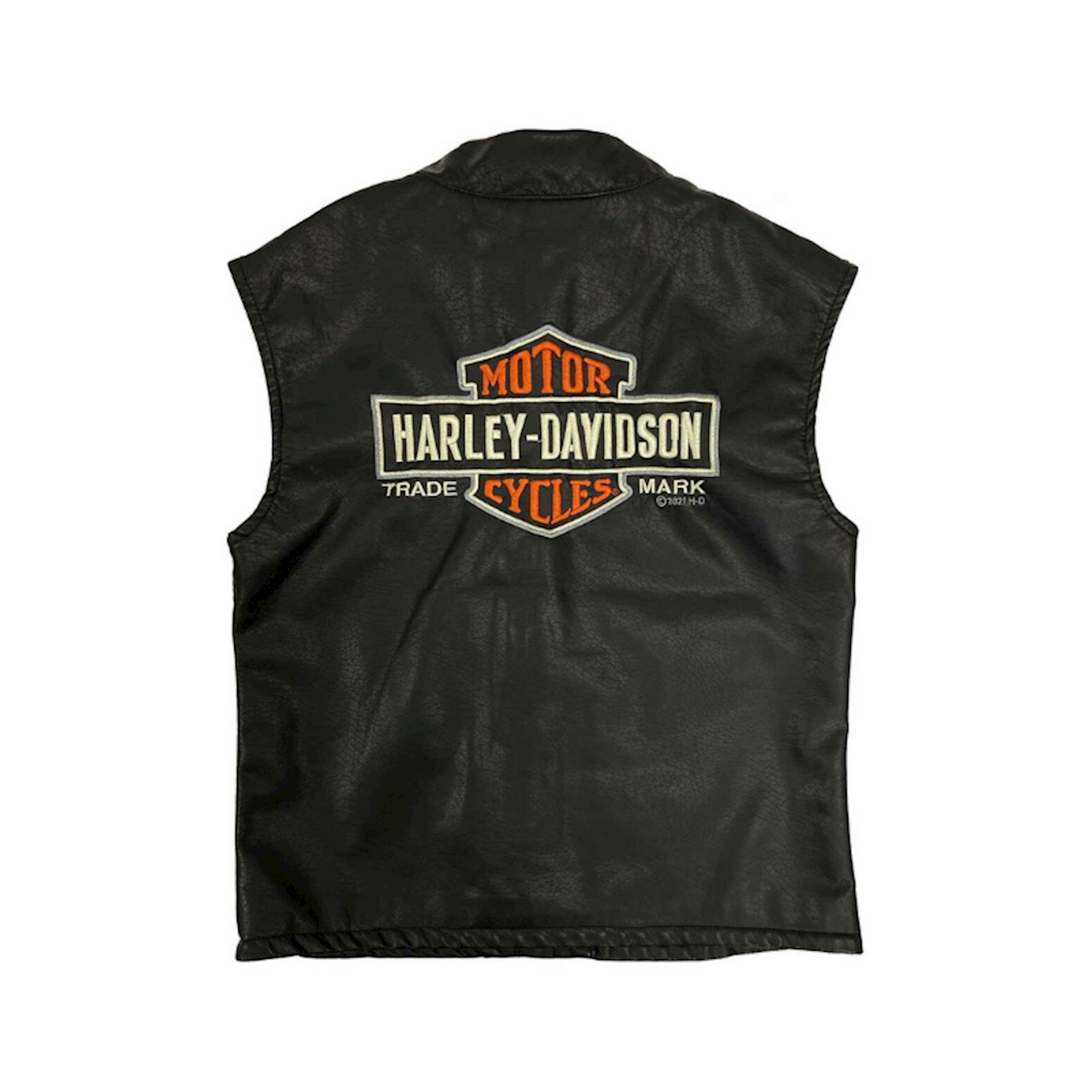 Harley-Davidson Embroidered Patches Snap Faux Leather Vest - Black