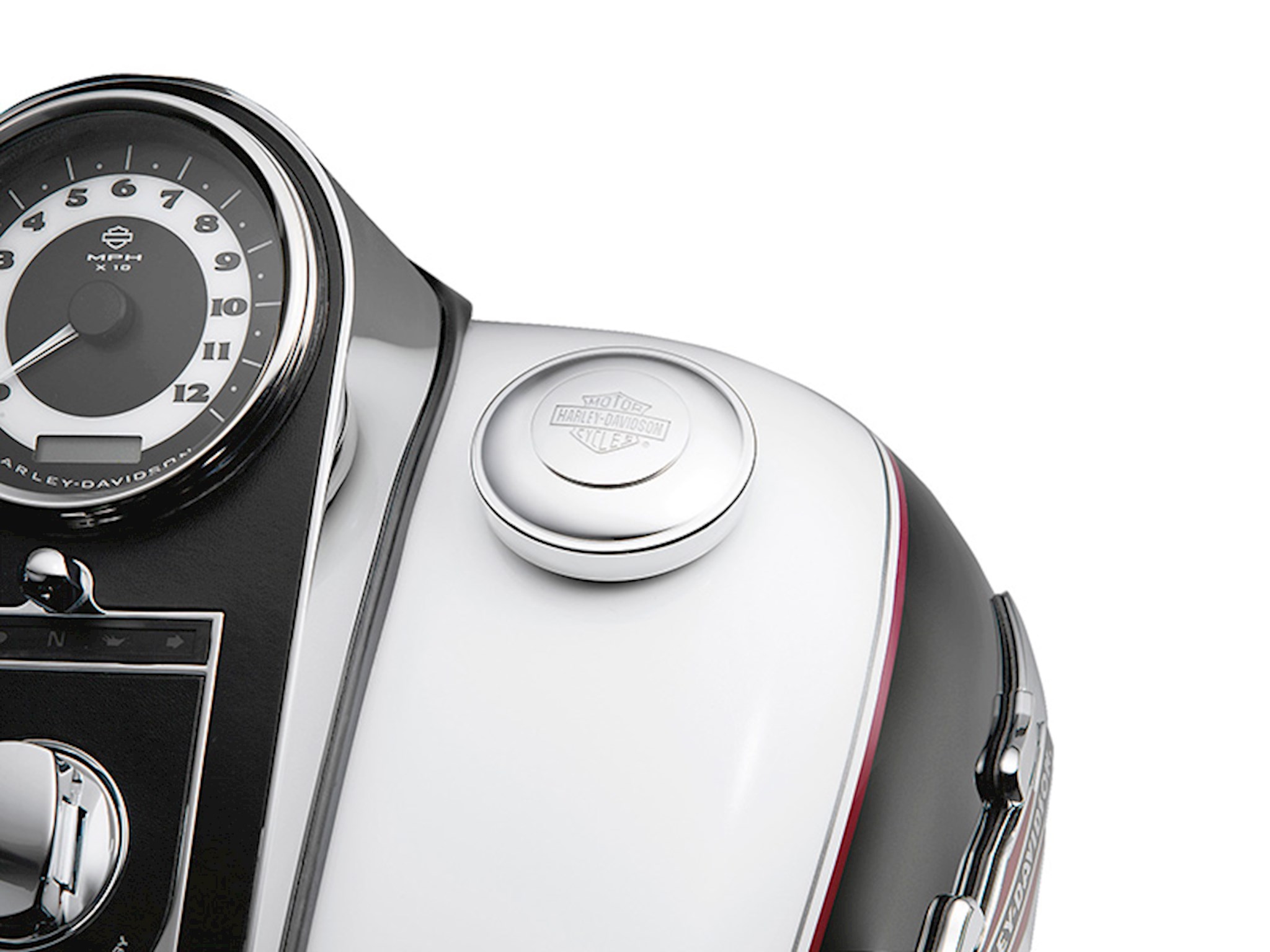 Functional and stylish, these polished, chrome-plated caps feature a convenient self-locking mechanism and a stamped Harley-Davidson Bar & Shield logo on the key hole cover. Maintains the same features as the Original Equipment fuel cap. The kits come complete with two keys.