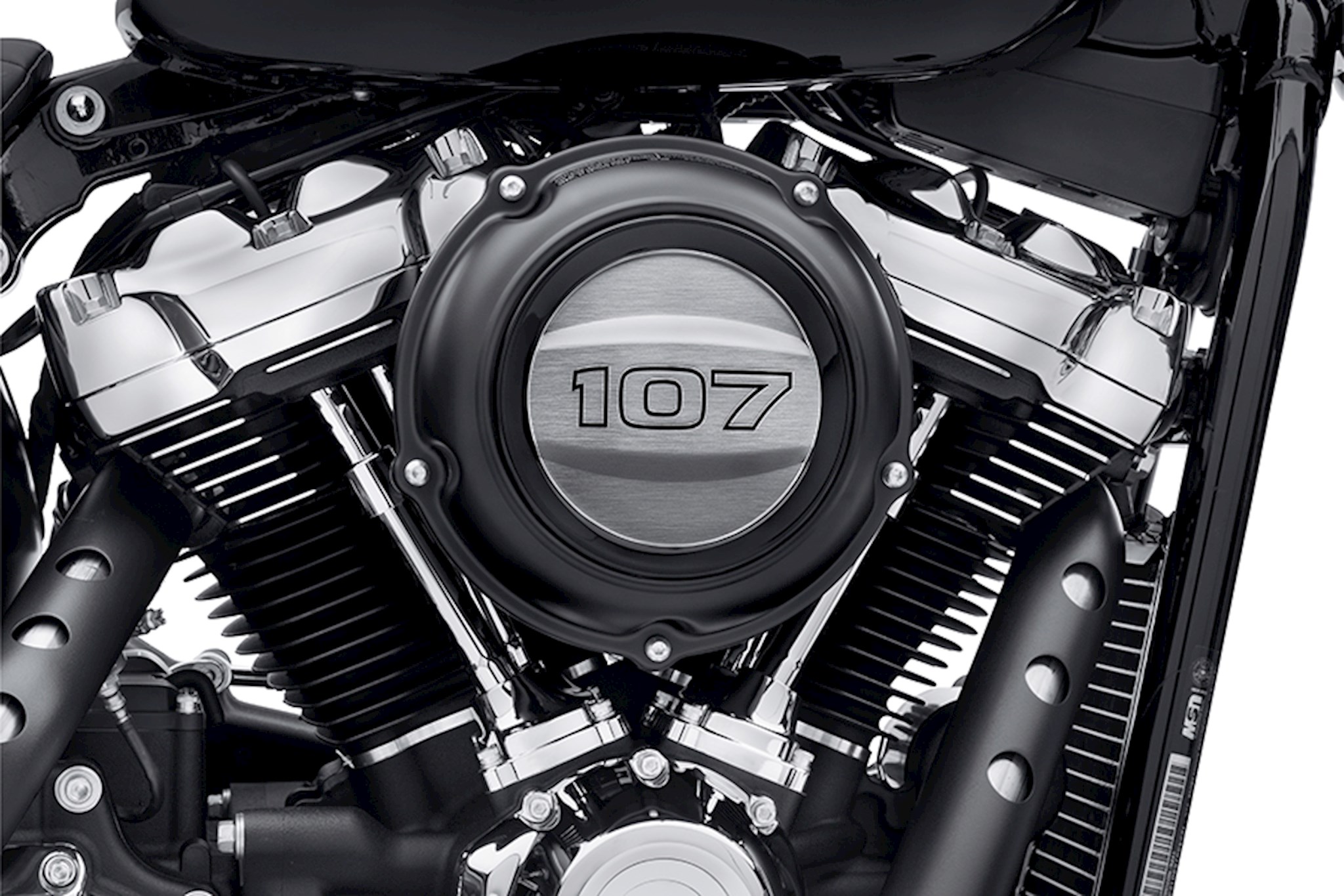 Show off your Milwaukee-Eight engine's displacement with pride. Available for 107 and 114 cubic inch engines, this brushed aluminum and black trim is the perfect complement to chrome or black engine finishes. This easy to install self-adhesive formed aluminum trim fits perfectly into the recessed face of the Softail models Original Equipment perimeter bolt air cleaner cover. Fits '18-later FLFB, FLFBS, FXBB, FXBR, FXBRS, FXFB and FXFBS models with Original Equipment perimeter bolt air cleaner cover.