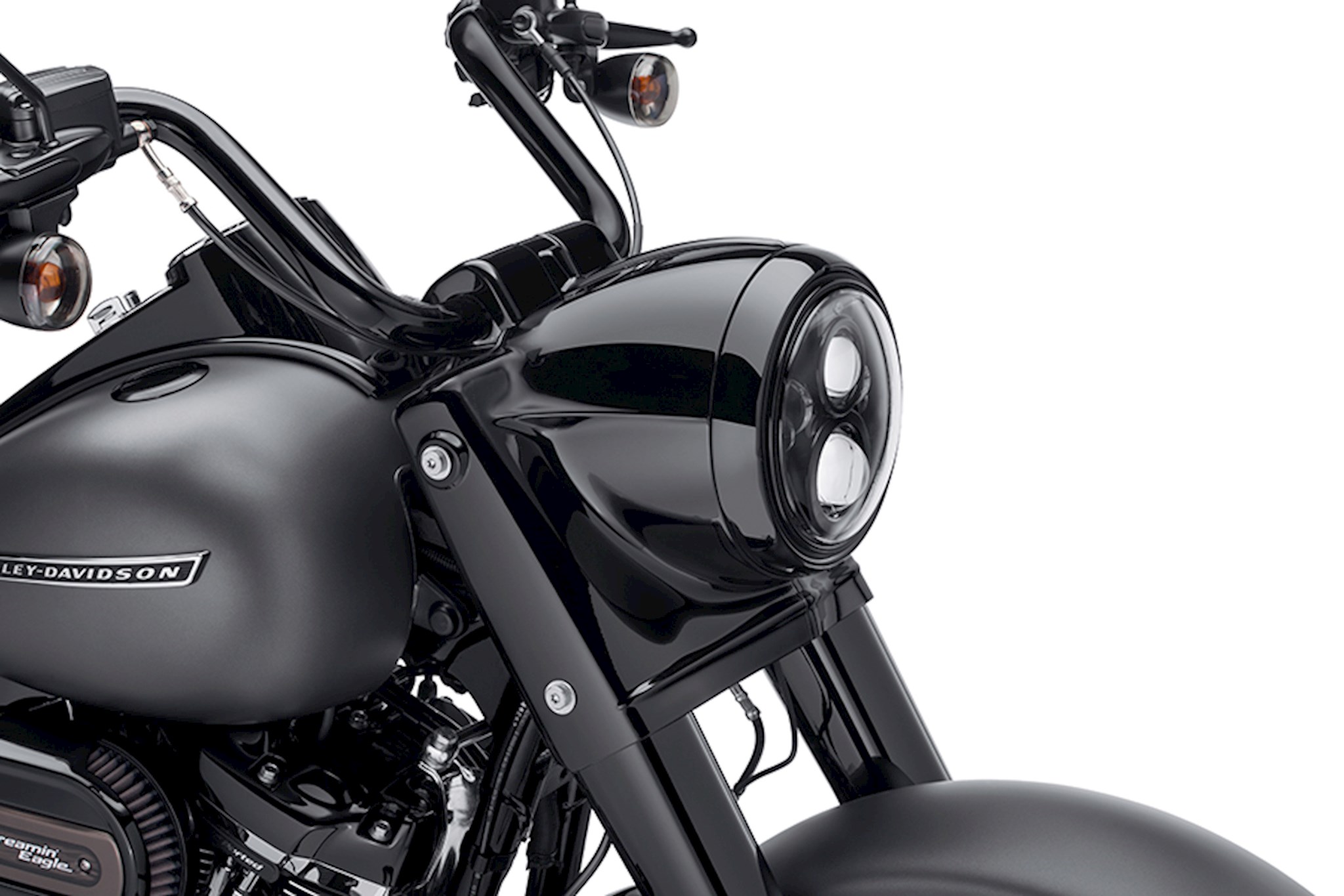 The classic Harley-Davidson® motorcycle color is black. It shows your attitude, your feelings and your desire to be different from the rest. Take the blacked-out look to the next level with this special gloss black Headlamp Nacelle. The bold black finish adds to the classic locomotive visual effect and visually stretches the profile of the Road King® model. Manufactured from Original Equipment components for superior fit and finish, the complete kit includes nacelle housing, handlebar cover, nacelle spear, and headlamp trim ring.