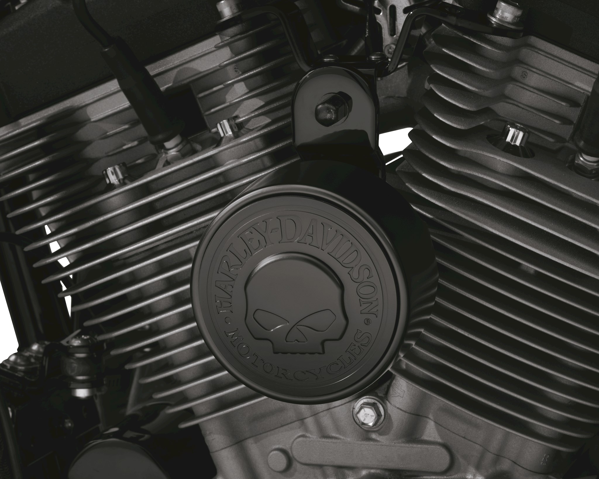 WILLIE G SKULL COLLECTION - BLACK As vast and infinite as your style, these Willie G Skull Collection Accessories are drenched in rich obsidian black and let you take the blacked-out look to a whole new level. The menacing dimensional skull and surrounding Harley-Davidson Motorcycles script add just the right touch of attitude to their clean, dark as night backdrops. Styled to complement other Willie G Skull Collection Accessories, this Round Horn Cover features a cast 3-dimensional Willie G Skull with surrounding Harley-Davidson Motorcycles script. This kit re-uses Original Equipment horn and mounting hardware.
