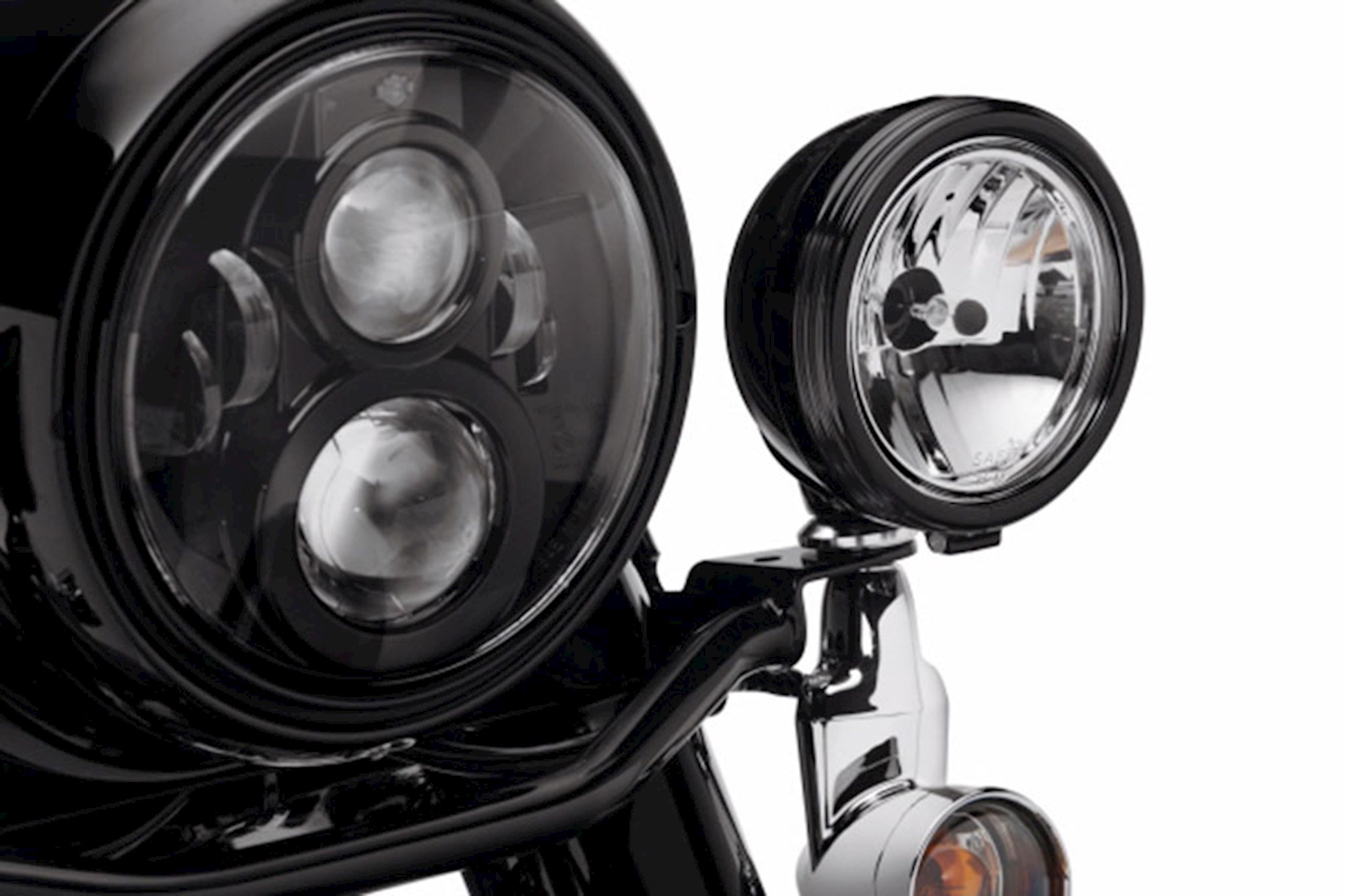 Ringed with deep radial grooves, Defiance Collection Headlamp Trim Rings reflect your custom taste. Available in mirror chrome, gloss black or machine cut black finishes, these cast aluminum trim rings surround the leading edge of the lamp for a solid billet look. Easy to install rings include mounting hardware. Fits '62-later models equipped with Original Equipment or accessory Auxiliary Lamp Kits. Sold in pairs.