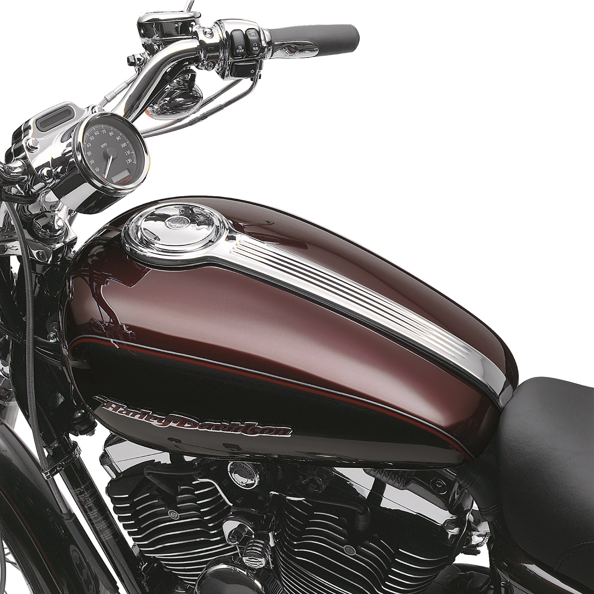 Set your fuel tank apart from the rest with this mirror-chrome Fuel Tank Trim Panel. Fits around the stock fuel cap and is adhesive backed.