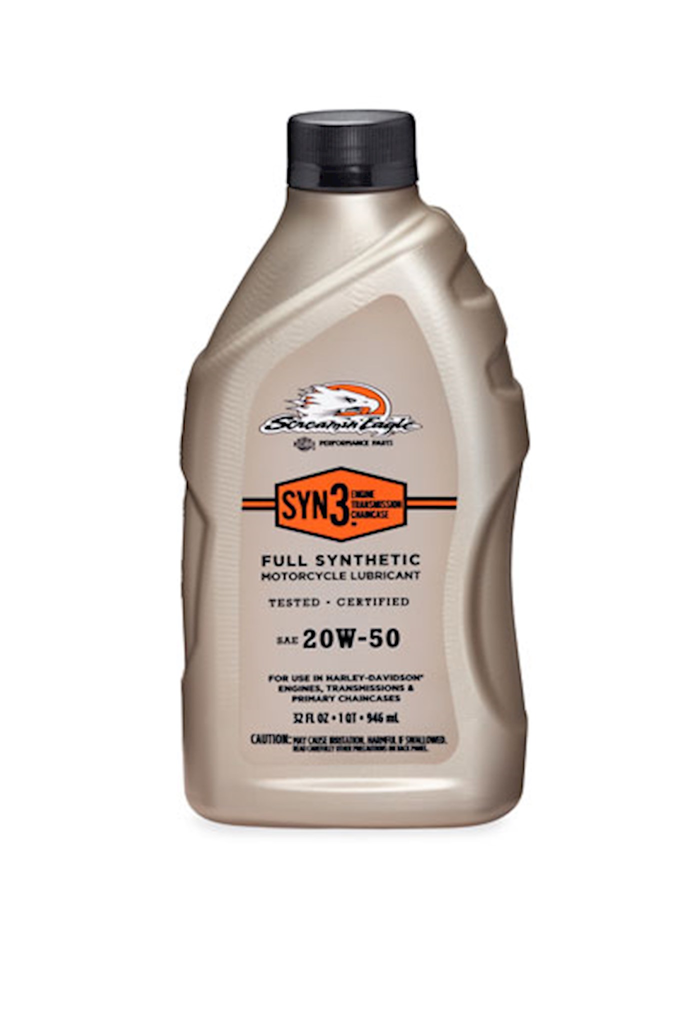 TESTED-CERTIFIED for use in Harley-Davidson® engine, primary chaincase and transmission applications, Screamin' Eagle® SYN3® Full Synthetic Lubricant makes changing and topping off fluids a simple, one-product process. Developed with a proprietary three synthetic basestock formula, Screamin' Eagle SYN3 Lubricant is formulated to provide for long-term protection and engine cleanliness requirements, and to provide superior high-temperature protection for high-output engines. SYN3 Lubricant is formulated to maintain the coefficient of friction for proper clutch operation and to provide the proper lubrication to the primary chain drive. In addition, SYN3 Lubricant is designed to provide the correct lubricity for the anti-wear requirements of transmission gears and for improved seal protection. This formula is approved by Harley-Davidson for use in all stages of engine life and is not detrimental to the break-in stage of engines. Formulated for use in Harley-Davidson engines, transmissions and the following primary chaincase applications: '71-later XL, '83-'84 XR1000, '08-'13 XR and '84-later Big Twin models with wet-type diaphragm spring clutch.United States