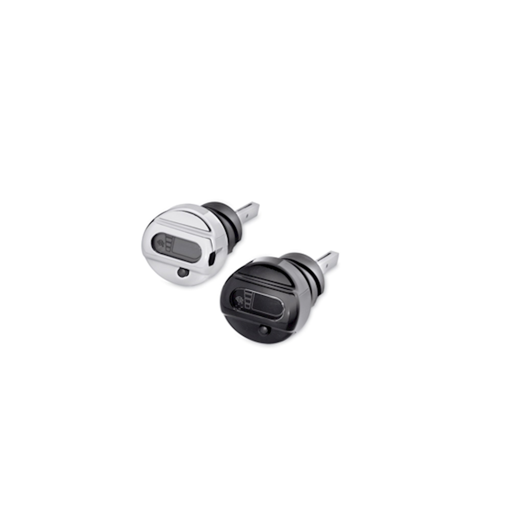 No more grabbing a rag to pull your hot dipstick. No more oil drips on your pipes and on the garage floor. These stylish yet hard-working dipsticks allow you to check your oil level and oil temperature with the push of a button. Simply push the button and this dipstick lights up with a brilliant backlight. Oil level is indicated by a four-segment readout - it even reminds you to check your oil when it is hot. Capacitive level sensing technology provides the highest degree of accuracy and durability. The waterproof LCD (liquid crystal display) readout operates on a long-lasting, replaceable lithium coin-type battery (CR2032 3V, P/N 66000107). Display features a low battery indicator and press-and-hold feature to toggle between Fahrenheit and Celsius. Fits '04-later XL and XR models.