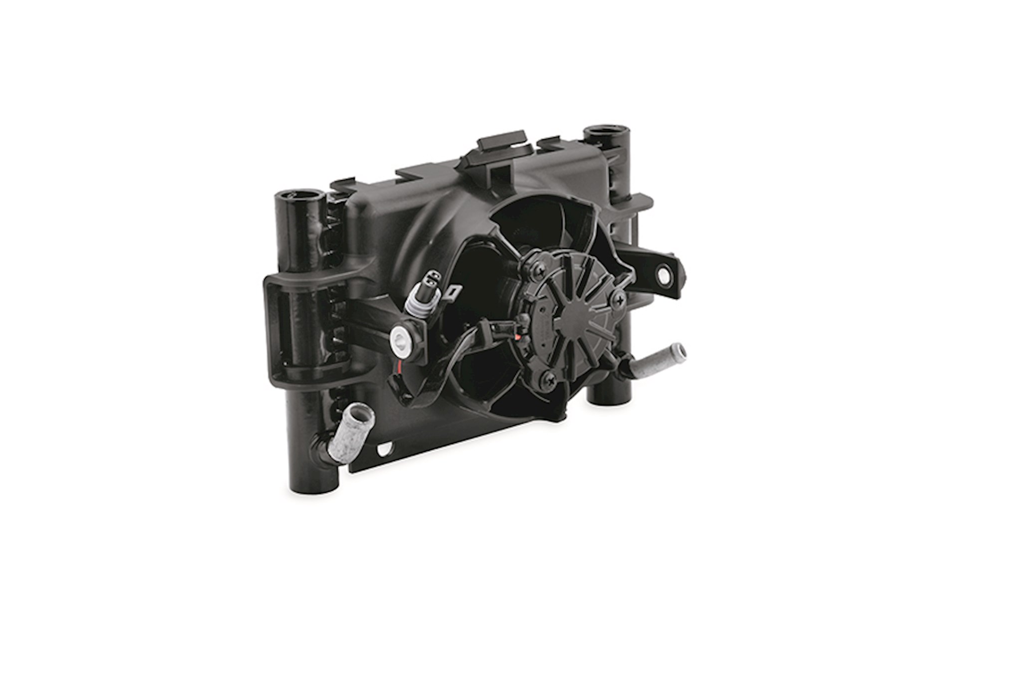 Keep your cool. This easy to install Oil Cooler features a thermostatically controlled fan that provides continuous flow of cooling air – even while the bike is idling in traffic or moving at low speed. Ideal for bikes that see parade duty and other low speed or continuous idle situations, the Fan Assisted Oil Cooler is also the perfect addition to a bike modified with high performance components. The fan automatically engages when the engine oil temperature rises, and when in operation, the Fan Assisted Oil Cooler can provide up to a 50 degree drop in oil temperature. And unlike other models, the Harley-Davidson Fan Assisted Oil Cooler utilizes weather-rated fans and electronics that are designed for the harsh motorcycle environment. Engineered as a bolt-on replacement for the Original Equipment oil cooler, the Fan Assisted Oil Cooler is plug-and-play compatible with your bike’s wiring harness. No splicing or rewiring is required.