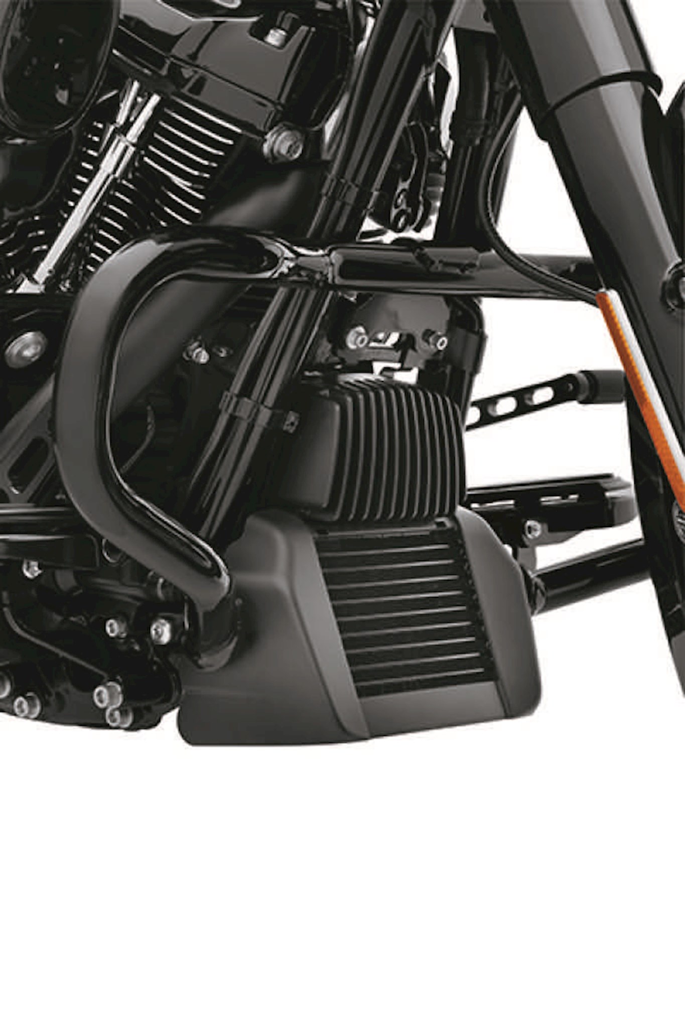 Fits '17-later oil cooled FLHR, FLHRC, FLHTCU, FLHTCUL, FLHX, FLHXS, FLTRX and FLTRXS models. Does not fit models equipped with Twin Cooled engines. Original Equipment on oil cooled Police and Freewheeler models.