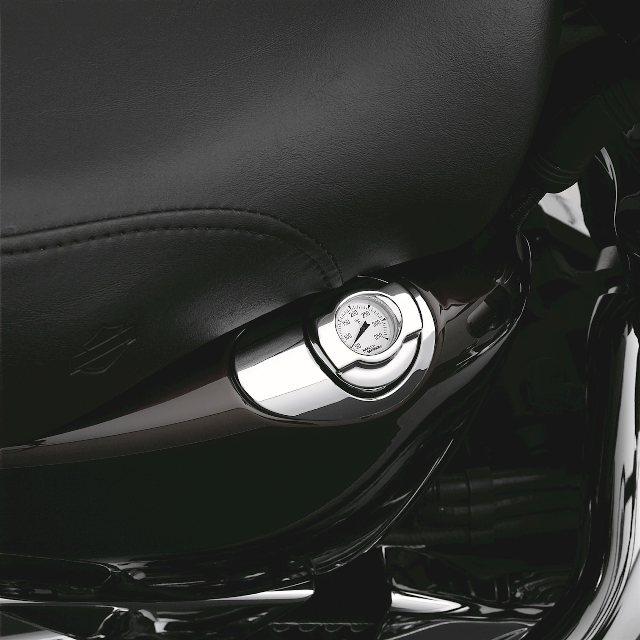 Replace your Original Equipment oil dipstick with this custom-styled version featuring an easy-to-see mechanical temperature readout with "Harley-Davidson" logo. A chrome-plated cap completes the styling and provides an easy grip for removal.