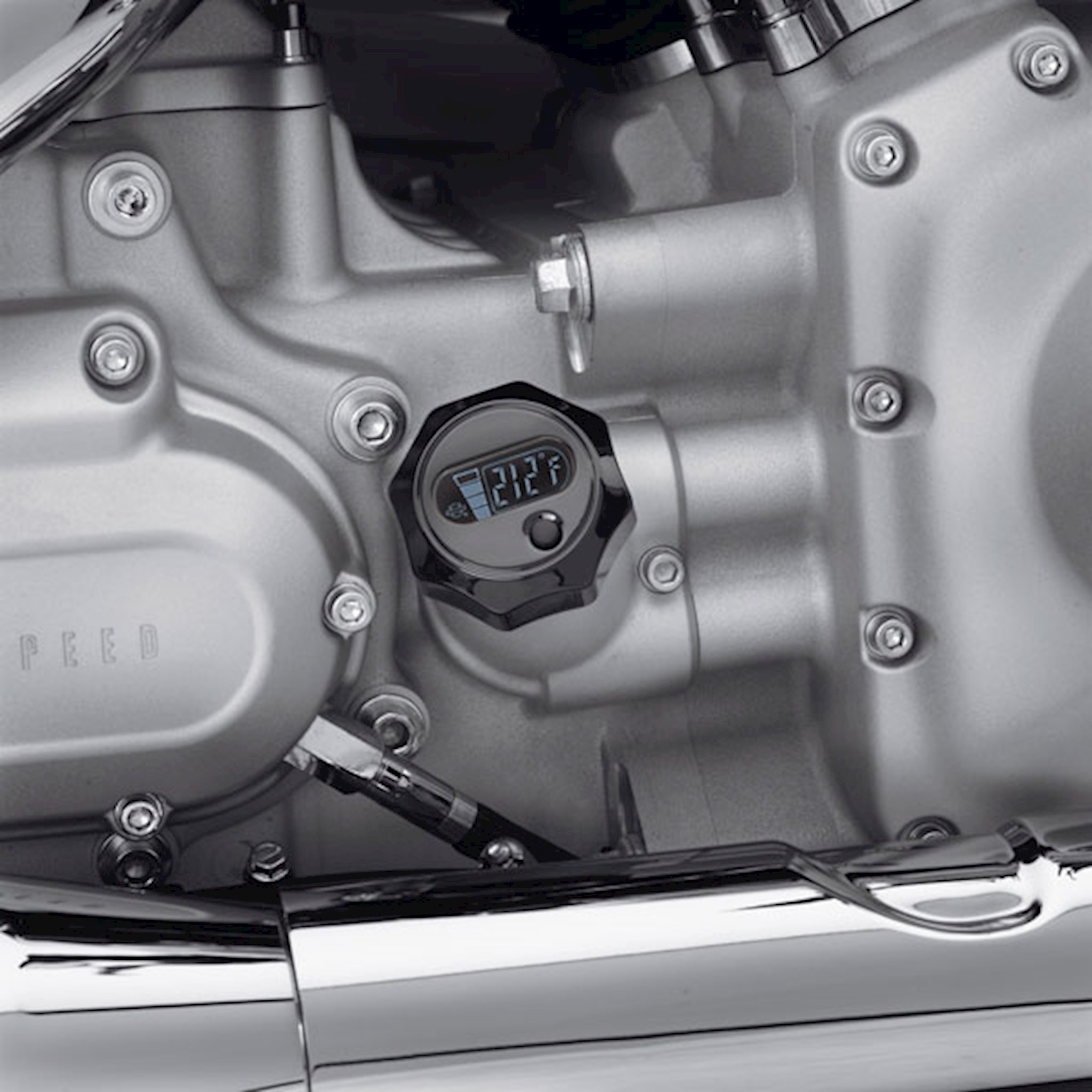 No more grabbing a rag to pull your hot dipstick. No more oil drips on your pipes and on the garage floor. These stylish yet hard-working dipsticks allow you to check your oil level and oil temperature with the push of a button. Simply push the button and this dipstick lights up with a brilliant backlight. Oil level is indicated by a four-segment readout — it even reminds you to check your oil when it is hot. Capacitive level sensing technology provides the highest degree of accuracy and durability. The waterproof LCD readout operates on a long-lasting, replaceable lithium coin-type battery (CR2032 3V, P/N 66000107). Display features a low battery indicator, and press-and-hold feature to toggle between Fahrenheit and Celsius. Fits '06-later Dyna® models (except FLD).