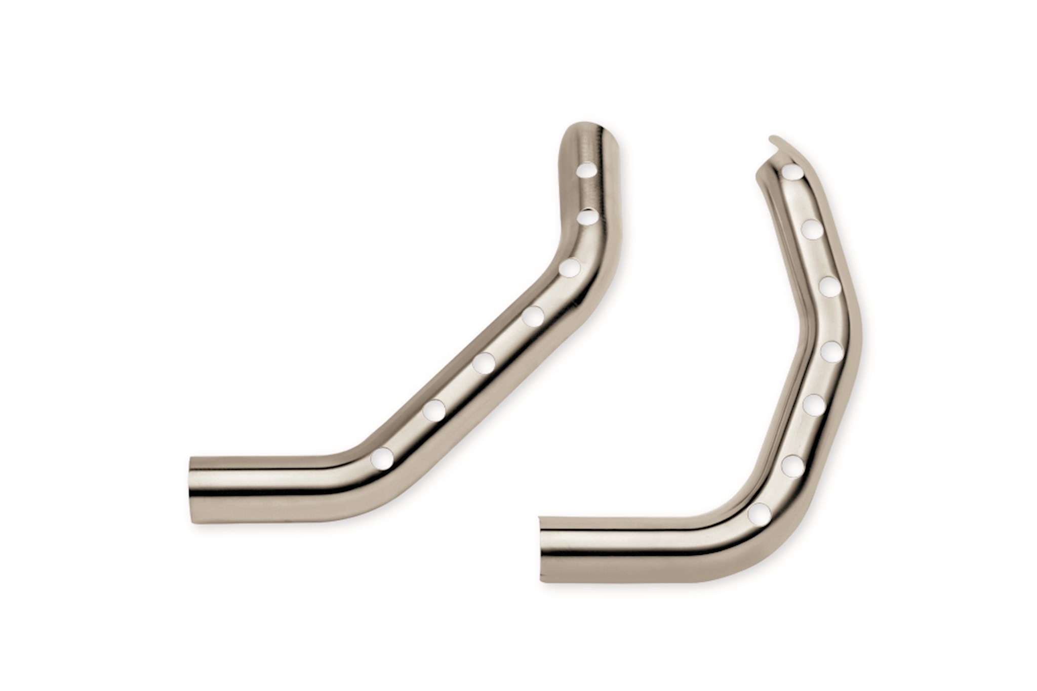 These custom shields feature a perforated "Buckshot" design that exposes the head pipe for a raw, rebellious look. Available in your choice of finishes, these exhaust shields are a perfect match for Original Equipment or Screamin' Eagle® mufflers and provide a consistent look from front to back. Manufactured to Original Equipment standards for exacting fit, the easy-to-install kit includes front and rear head pipe shields. Fits '04-'13 XL models.