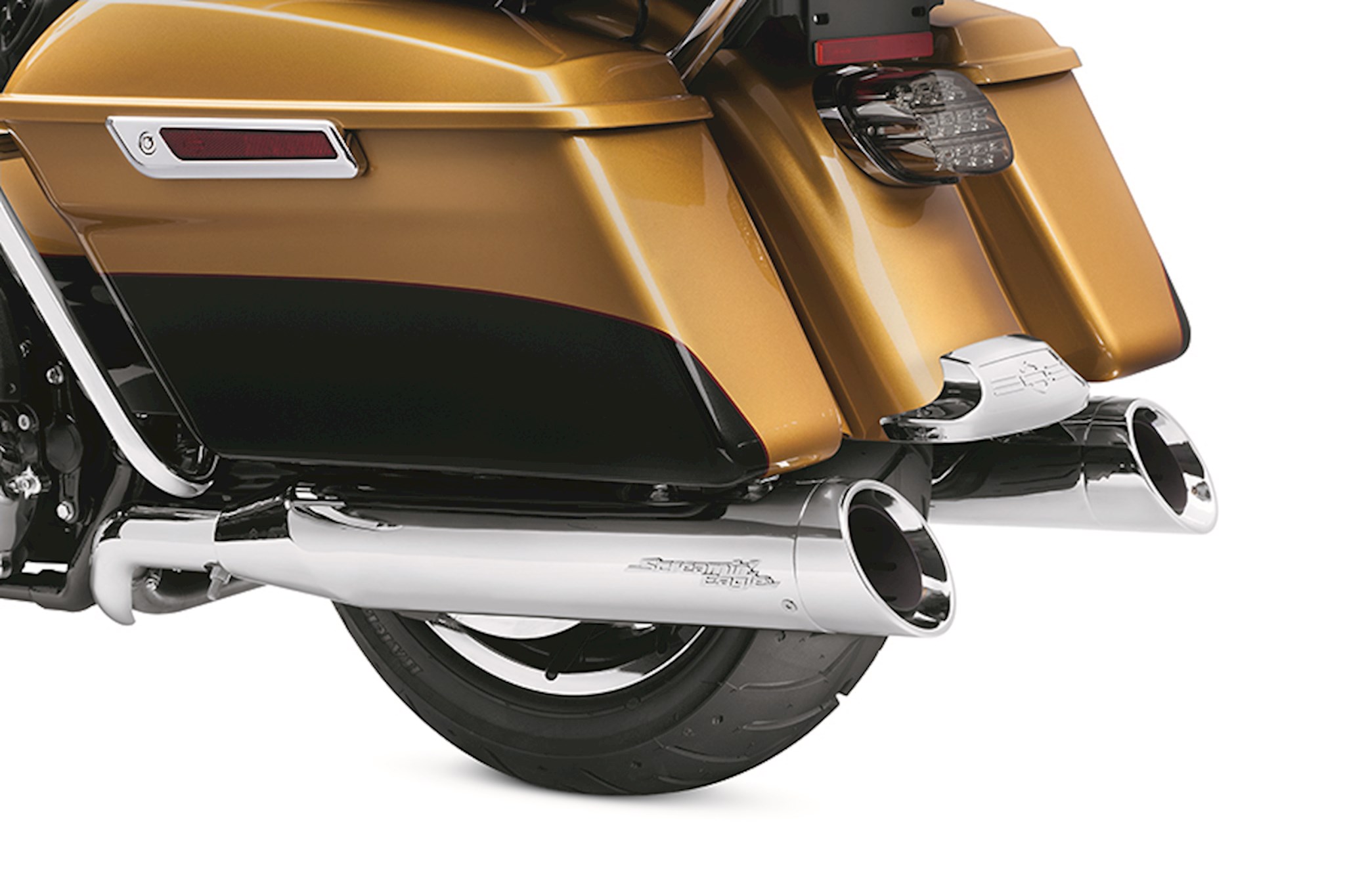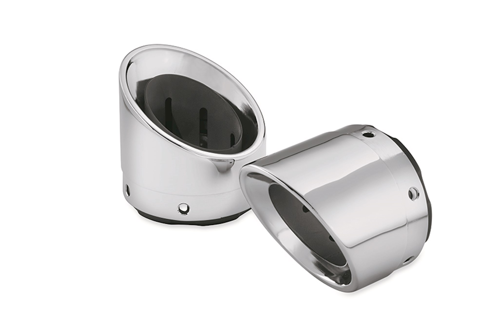 Shaped to provide a complete finishing touch to the rear of your bike, these slash cut end caps feature a reverse cone rolled edge for a massive solid billet look. The reverse cone opening hugs the internal slotted flash suppressor-inspired barrel for a weapons-grade style. Fits '17-later Touring models equipped with 4.5" Screamin' Eagle Street Cannon mufflers. Does not fit CVO Touring mufflers.
