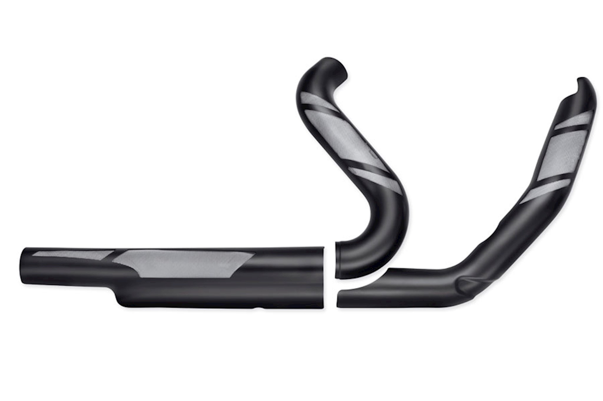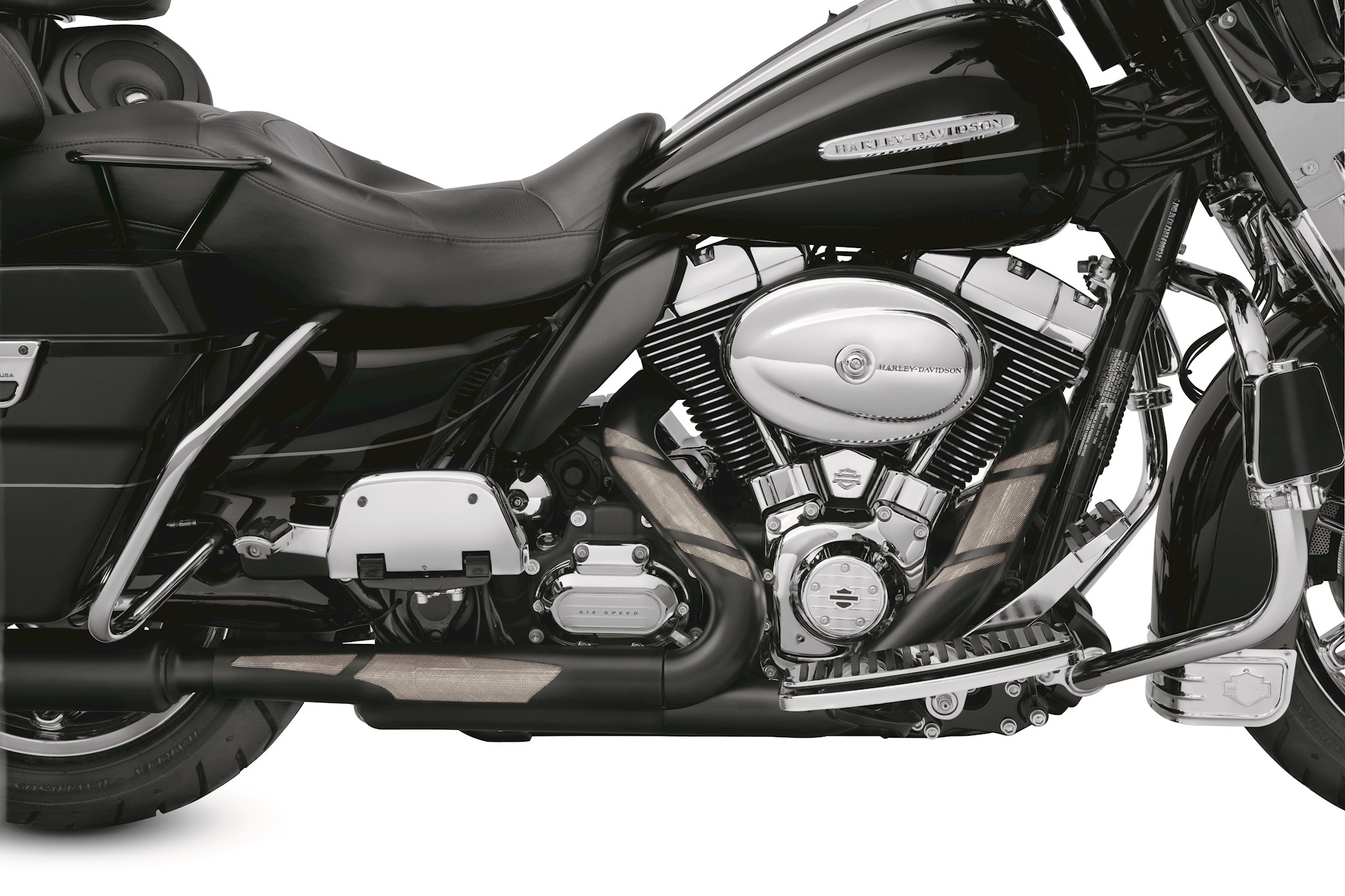 Show-winning style. This kit replaces the factory exhaust shields with a unique and attention-getting design. The shields feature laser cut openings that are filled with tightly-woven mesh that delivers a modern high performance look. Available in chrome or jet black ceramic, the finish is a perfect match for Original Equipment or Screamin' Eagle® mufflers. The easy-to-install kits include front and rear header shield and collector shield. Fits '09-later Touring and Trike models (except '10 FLHX and FLTRX).