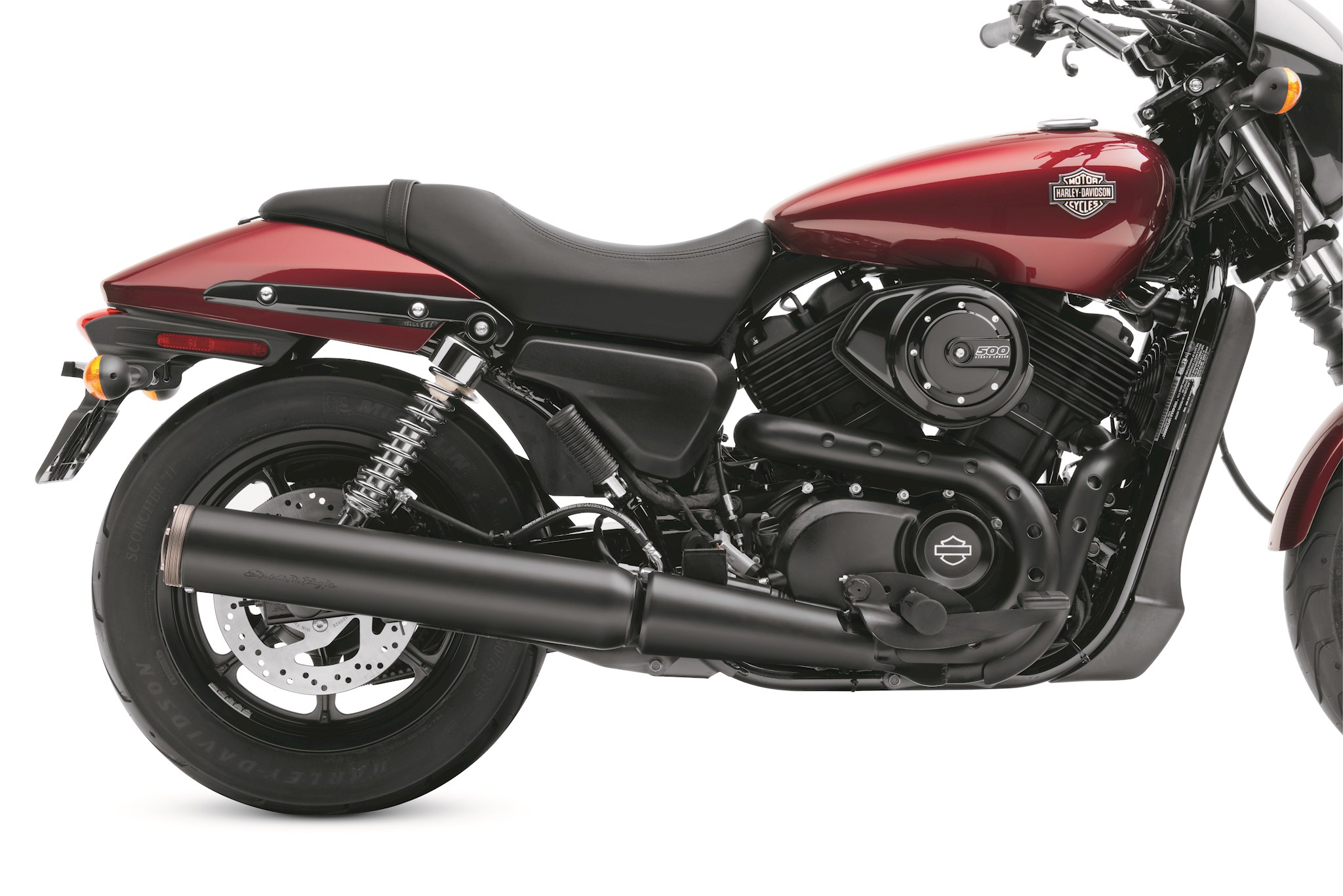 These custom exhaust shields feature a perforated "Buckshot" design to expose the head pipe for a raw rebellious look. These exhaust shields are a perfect match for Original Equipment or Screamin' Eagle muffler and complement the blacked out Harley-Davidson Streetâ„¢ model. Manufactured to Original Equipment standards for exacting fit, the easy-to-install kit includes front and rear head pipe shields.