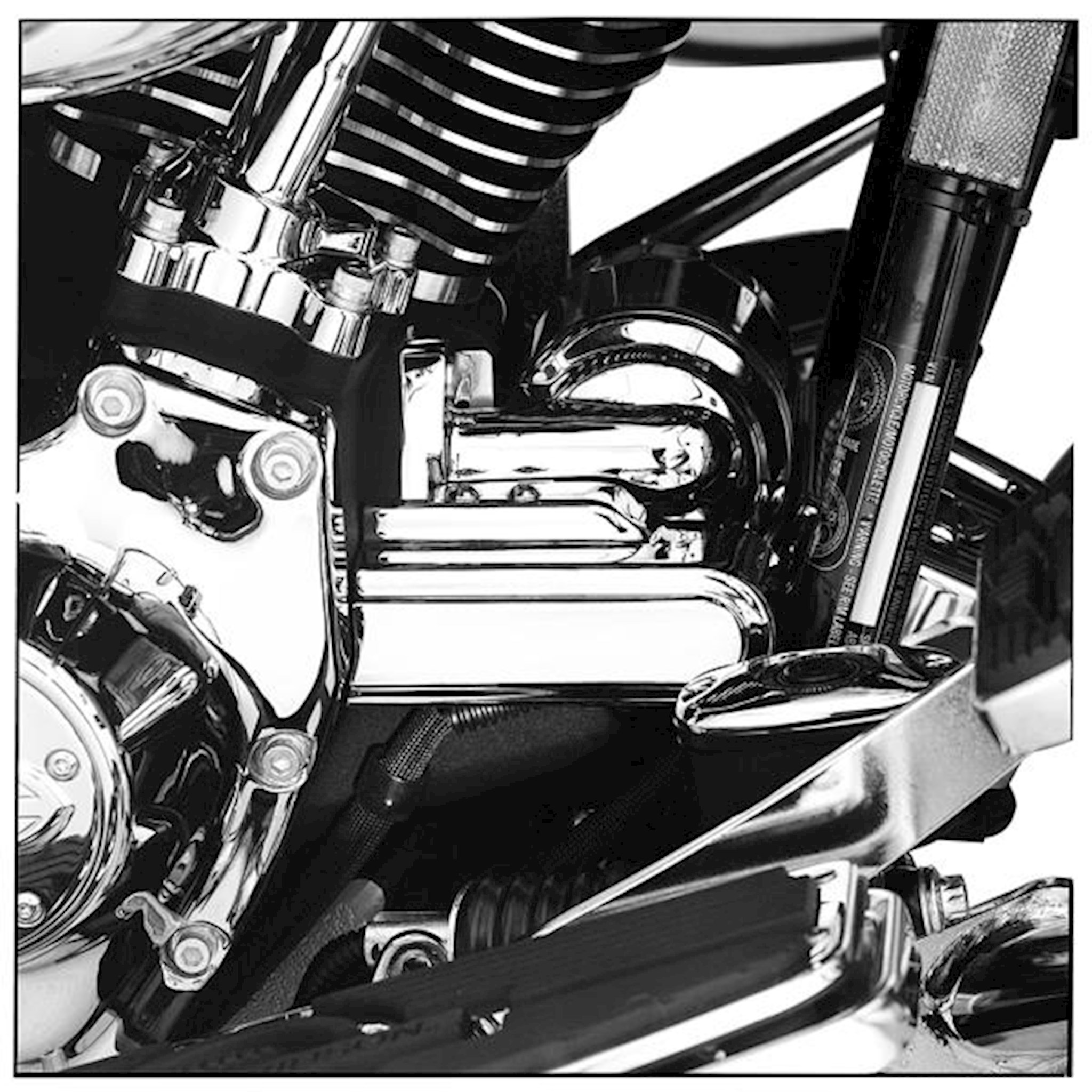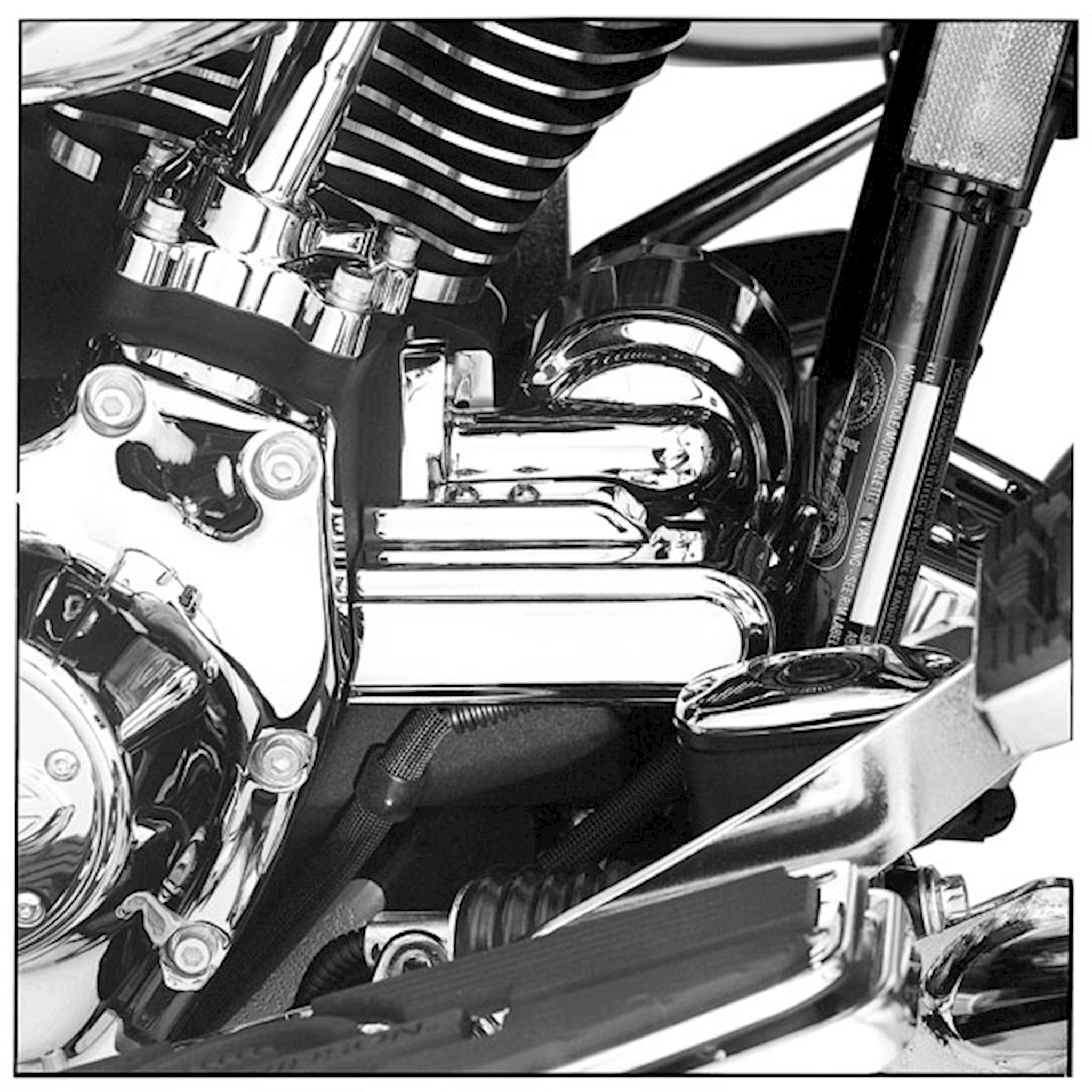 Cover the stock oil pressure switch with this highly-polished chrome cover. This cover is easily installed with the hardware provided.