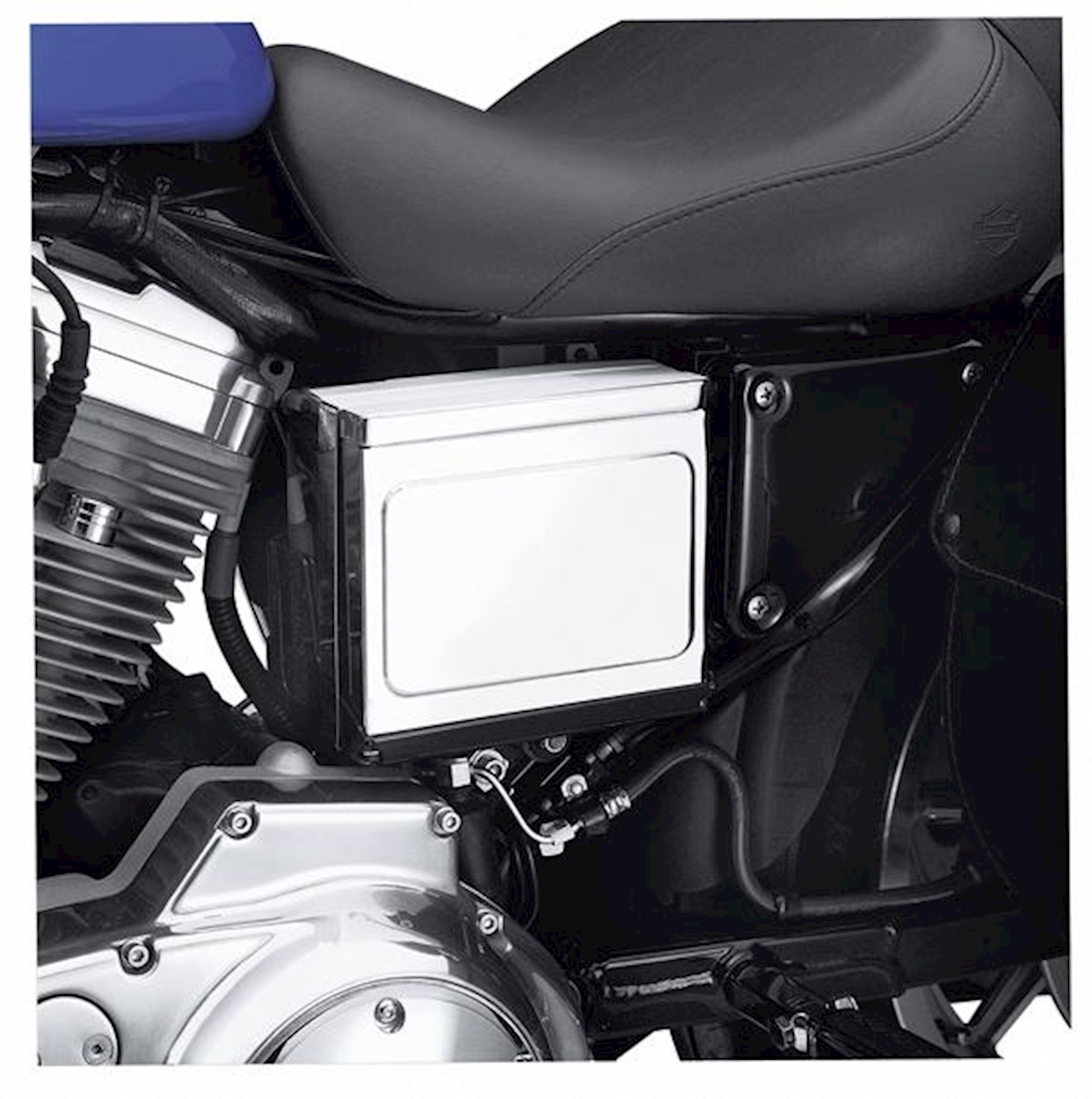 Chrome-plated battery enclosures include slotted openings for convenient visual check of battery fluid levels. Easy installation.