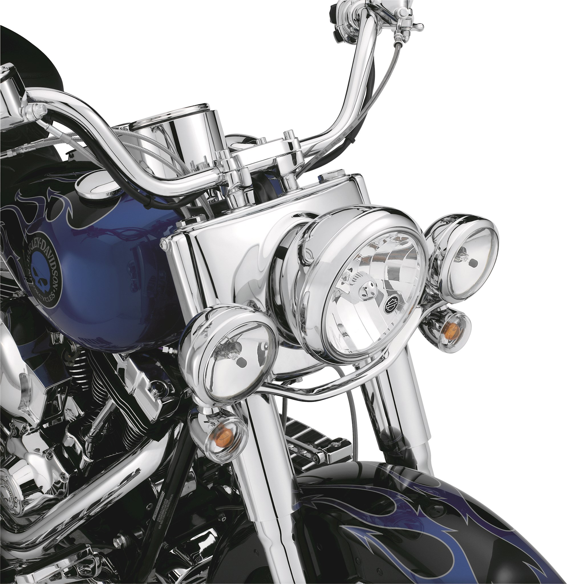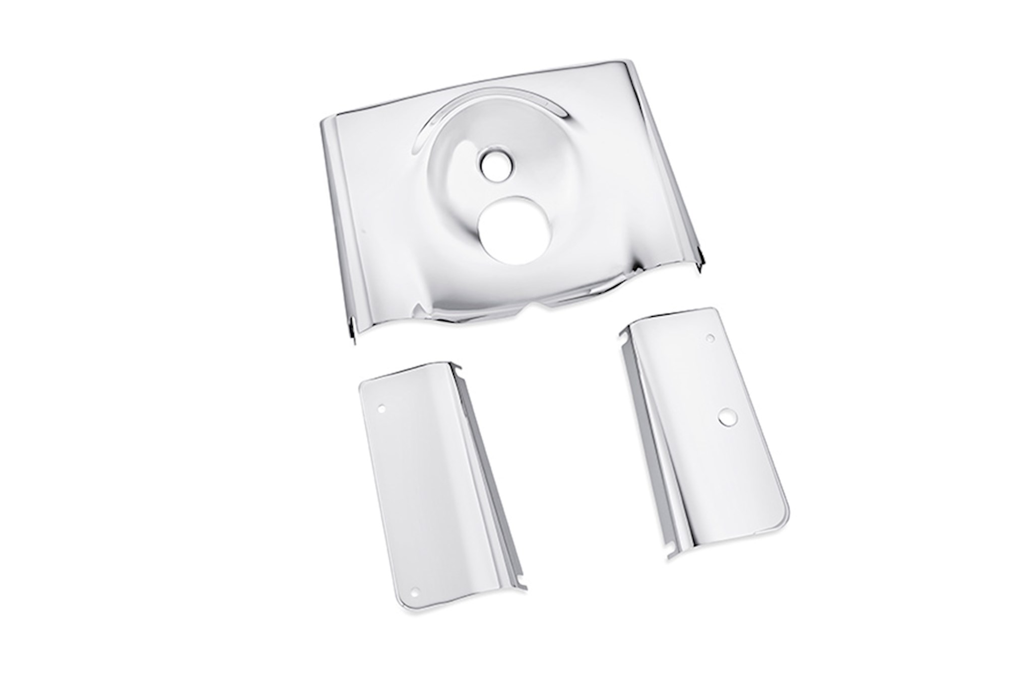 Bring the smooth look of the Softail® Deluxe model to your Heritage Softail® Classic model. Mirror-finish chrome flows over the surface and wraps around the triple tree for a custom fit. This three-piece kit includes smooth front panel and matching left and right side panels.