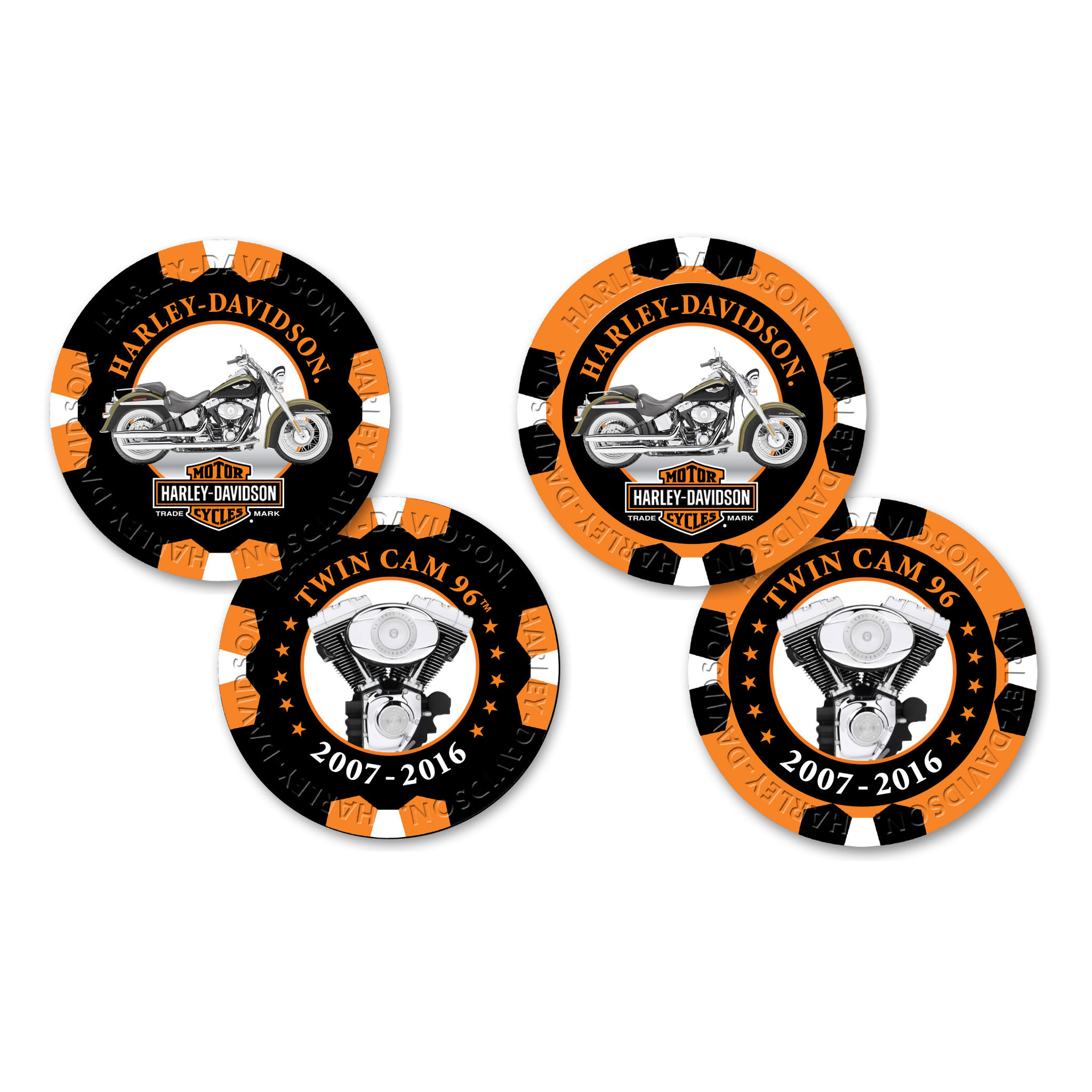 Historic Harley-Davidson® Motorcycle & Engine design. H-D® embossed 11.5-gram full color chip. 2 collectable chips.