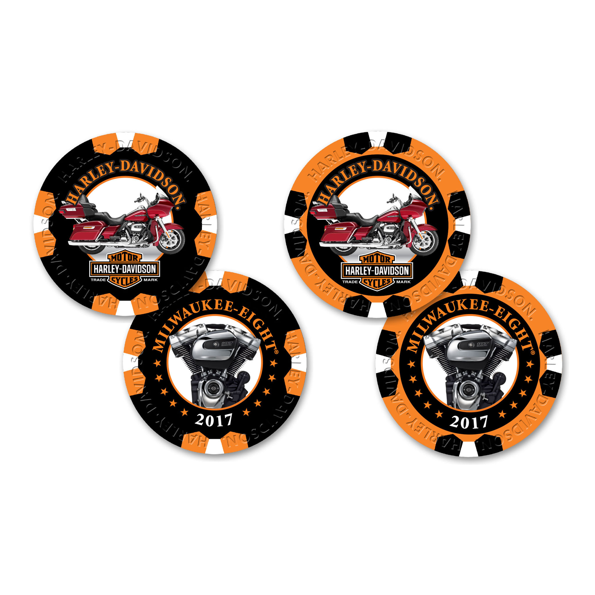 Harley-Davidson® Milwaukee Eight Motorcycle & Engine design. H-D® embossed 11.5-gram full color chip. 2 collectable chips.