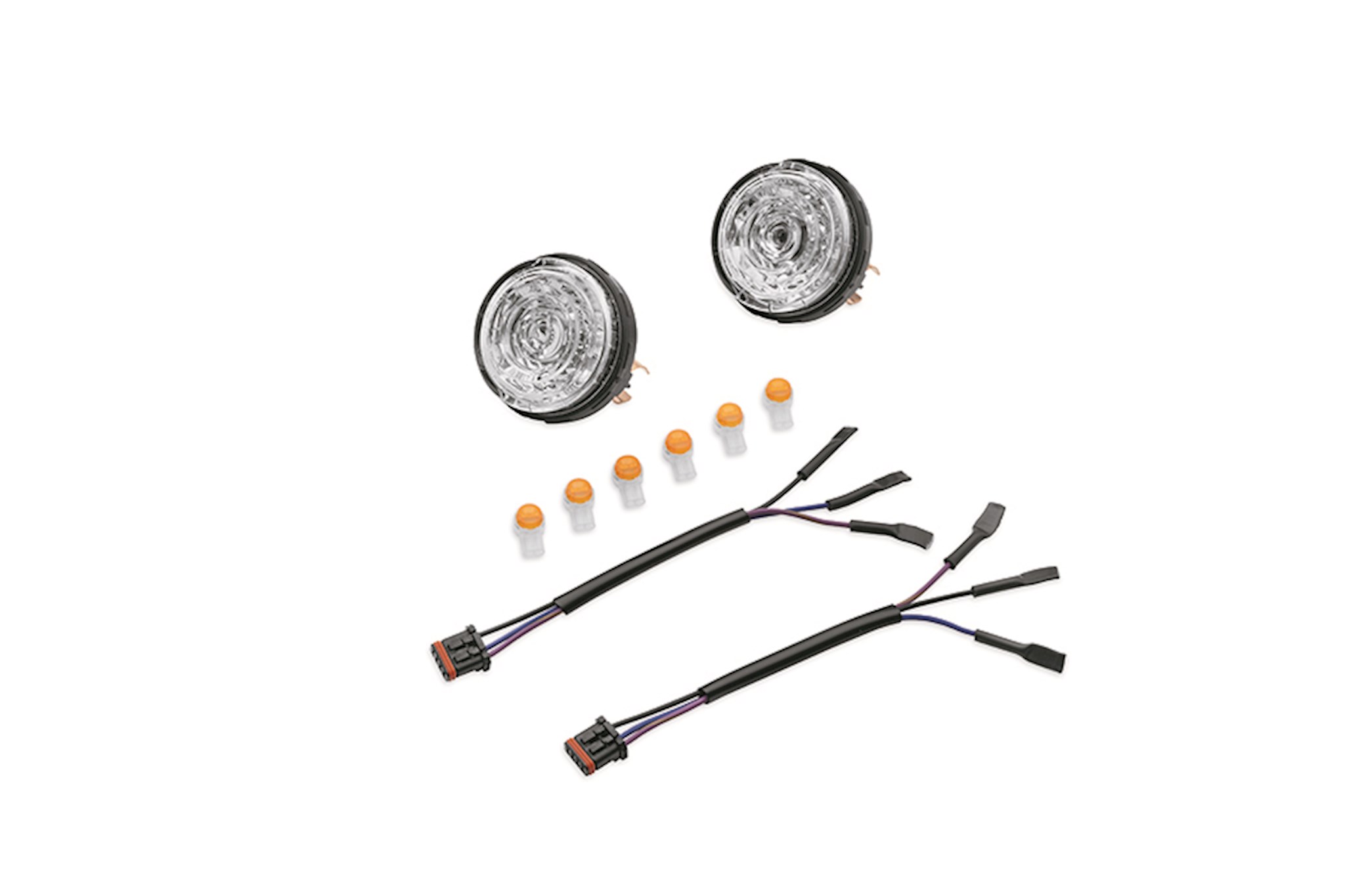 Grab the attention of the traffic around you. LED Turn Signal Inserts feature a single bright, fast-acting amber or red LED lamp sealed in a waterproof housing. The multi-faceted reflector amplifies the light, and the focused lens spreads the light across the lamp’s surface. The drop-in lamp assembly replaces the bulb and reflector in the stock bullet turn signal housing for a simple on-bike installation, and the included plug-in harness and crimp connectors attach directly to the existing turn signal wiring. Installation does not require a control box or load equalizer for correct operation. Kit includes 2 LED modules, 2 wiring harnesses, and crimping connectors. Customize the look with your choice of outer lens cover color. Lenses sold separately. Amber Inserts are DOT/ECE compliant. Red Inserts are DOT compliant.