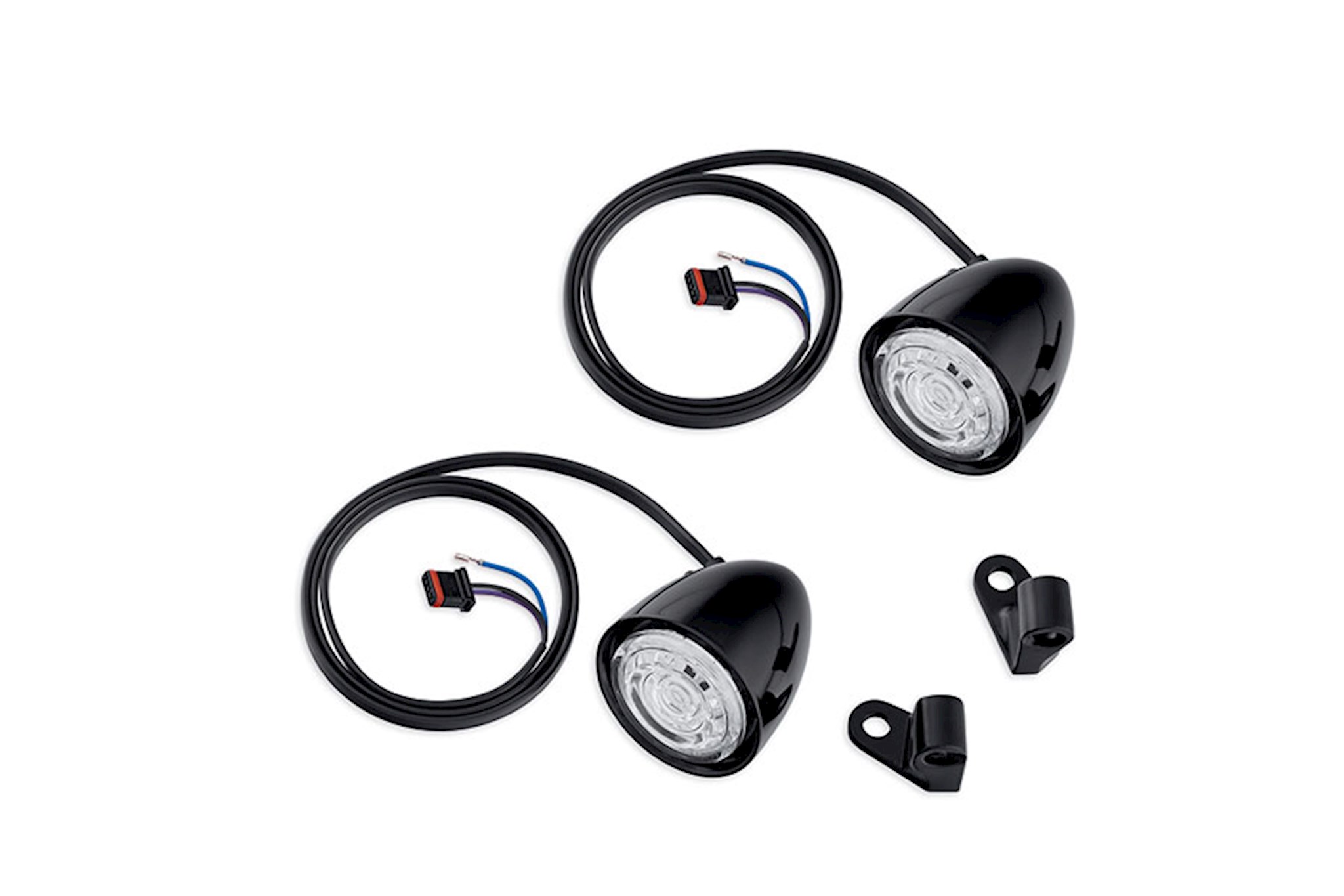 Fits '18-later FXLR, FLSB, FLFB, and FLFBS models. Kit includes LED lamps, black housings and black turn signal mounts.