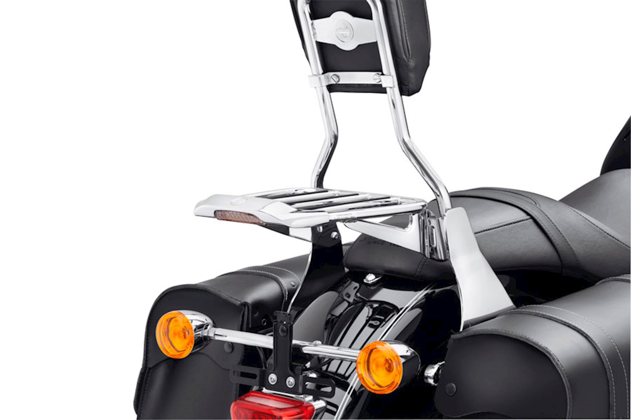 Custom fit to the Air Foil Luggage Rack, this fast-acting LED Light Kit operates as a supplemental rear running light and brake light. The high, center-mount position places the light in the line-of-sight of following vehicles and the bright, fast-acting LED lamps get you noticed. Wiring is concealed inside the rack tubes for a clean, custom installation. Available with red or smoked lens. Fits Air Foil Luggage Rack P/N 54290-11, 54291-11 and Air Wing Sissy Bar Upright P/N 52300146 and 52300147. Installation requires separate purchase of model-specific Wiring Harness Kit.