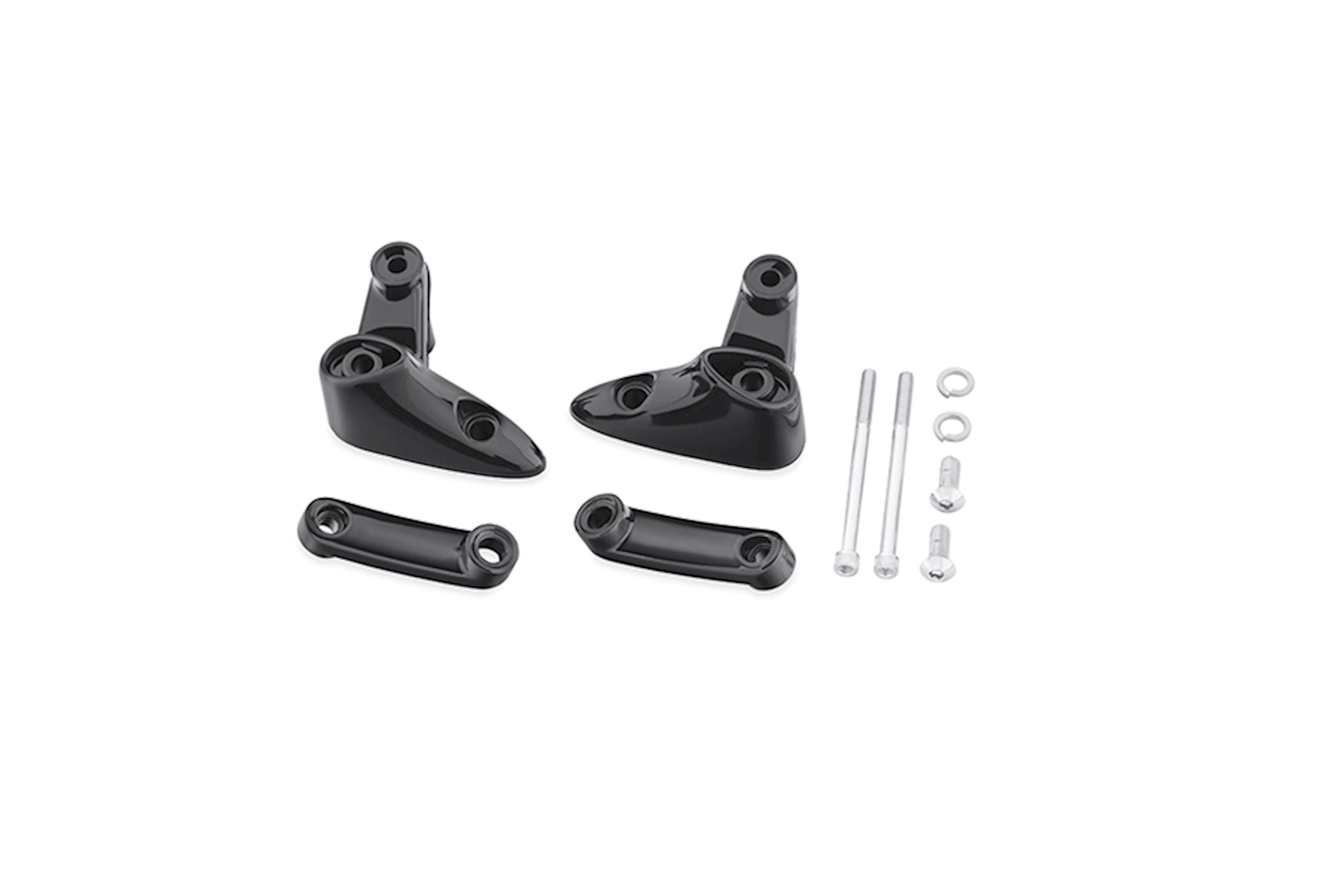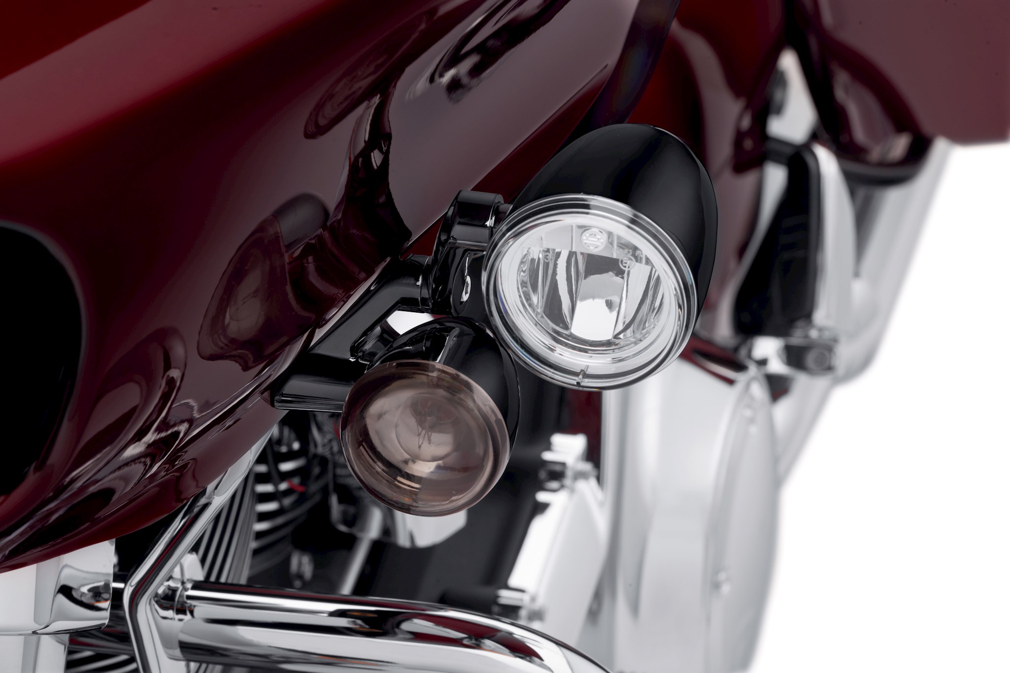 This elegant Mount Kit replaces the Original Equipment turn signal mount, and positions the Daymakerâ„¢ Reflector LED Fog Lamps and turn signals close to the fairing for a custom look. The resulting installation provides a supplemental pool of light in front of the motorcycle, and a clean, uncluttered look to your bike's profile. Mount can be used with Original Equipment or accessory Bullet Turn Signals. Available in chrome or gloss black finish, the kit includes left and right mounts and all required hardware. Requires separate purchase of Daymaker Reflector LED Fog Lamps. Fits '15-later Road Glide® models with Original Equipment or accessory bullet turn signals. Requires separate purchase of Daymaker Reflector LED Fog Lamps.
