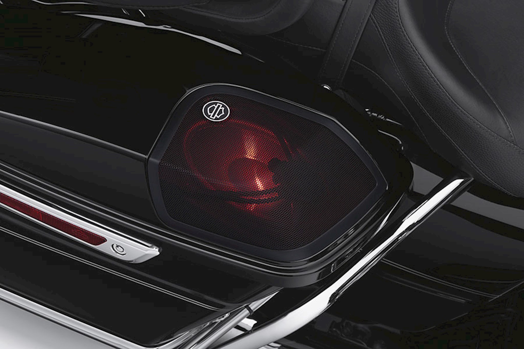 Nothing draws attention at the curb like a well-lighted bike. Whether you are looking for a rich neon glow or a pulsing crowd pleaser, the Harley-Davidson® Spectra Glo Lighting System brings ultra-bright LED lighting to your ride. The Spectra Glo System utilizes RGB LED technology to produce over 500 shades of brilliant color, all controllable with a waterproof handheld wireless fob. Simply use one button to select one of the 7 base colors, and then dial in the shade you desire. You can choose to match the color of your bike, or add a contrasting tone from the wide spectrum of colors. Once you select a color, you can choose between solid, flash or fade modes with a tap of the remote control. Spectra Glo Speaker Illumination adds a diffused neon glow to the Boom!™ Audio speakers. The compact LEDs are installed under the speaker bridge to provide a pool of light across the surface. Kits are available to fit Stage I and Stage II 6.5" Round Speakers and 5" x 7" Saddlebag Lid Speakers. Kits include two LED rings, mounting template and wiring harness.
