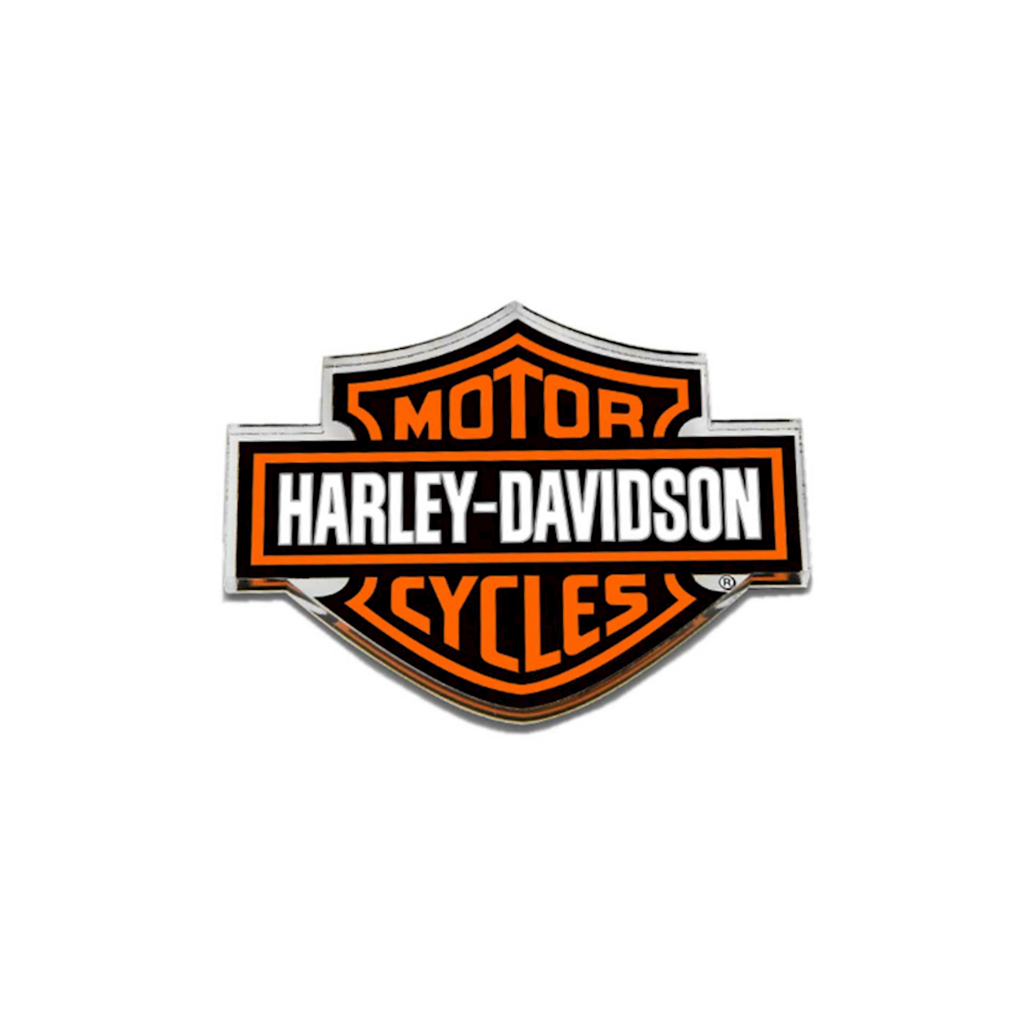 Harley-Davidson® Bar & Shield Logo Magnet, 8004972. Iconic cut-out orange and black Bar & Shield logo. High-quality hard sided acrylic magnet. Strong magnetic backing. Size: 3.25" x 2.5". Great for a fridge or a tool box!