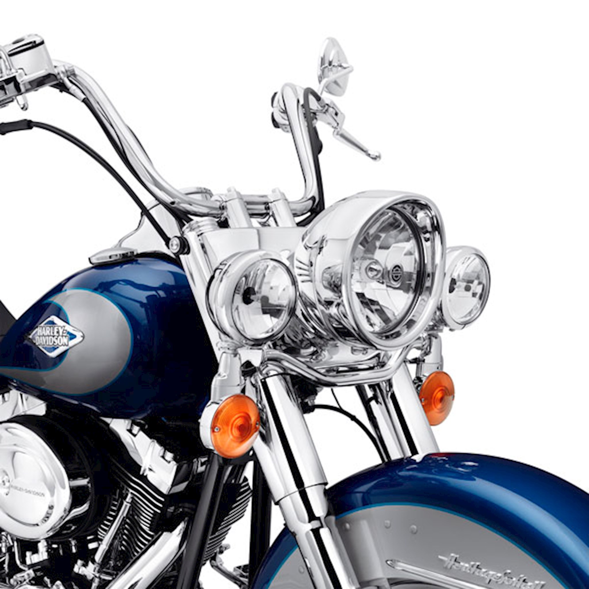 Easy to install, this kit relocates the turn signals from the handlebar to the auxiliary lamp chrome mounting bracket. Provides a clean look to the front end of the motorcycle by removing wires and lights from the handlebar area. Kit includes turn signals for auxiliary lamps, mounting bracket and all necessary hardware. Fits Softail® models equipped with Auxiliary Lighting Kit P/N 69287-07.