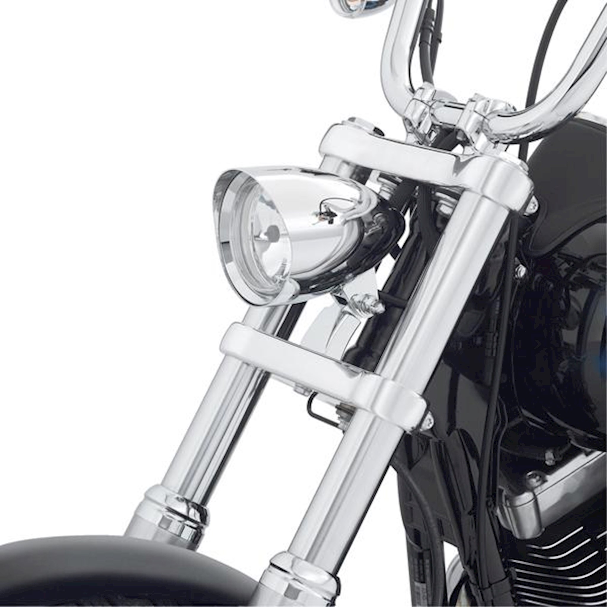 Light the way to a custom look. This mirror-chrome Bullet Headlamp Kit features a high-tech deep drawn aluminum housing that is precision machined for a perfect contour and surface finish. The visor-style shell adds a unique profile to the bike's front end and the complete kit includes a smooth lens lamp assembly with a replaceable halogen bulb. Fits '14-later XL1200V, '96-'10 and '14-later XL1200C, '98-later XL883C, '94-later FXDWG, '06-later FXD, FXDC, FXDB, FXD35, FXDSE, FXDF, '06-'13 FXDL, '99-'00 FXR2/3/4, '84-'99 FXSTC, '99-later FXST, FXSTB, FXSTC, '08-later FXCW, FXCWC, FXS, FXSB, FXSBSE and '00-'07 FXSTD models. Installation requires separate purchase of appropriate Headlamp Mounting System P/N 68595-06 or 69611-06. Not compatible with LED headlamps.